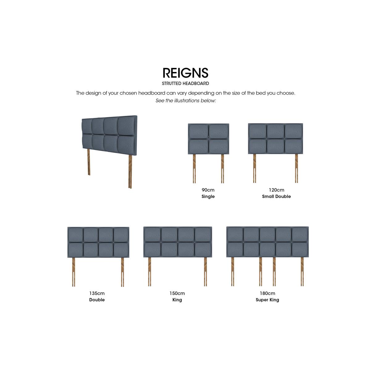 Discover The Artisan Collection, designed to bring handcrafted luxury and style to your bedroom. This premium range includes a selection of divan bases – from traditional platform tops offering a firmer feel to sumptuous pocket sprung options for enhanced mattress comfort. Many divan bases are available with storage drawers, in both standard and on-trend shallow designs. Complement your divan with one of the collection’s striking floor-standing headboards, including standout winged designs. Each piece in The Artisan Collection is beautifully upholstered in a wide choice of luxury fabrics and handcrafted in the UK, ensuring exceptional quality and elegant style for your sleep sanctuary. This high strutted headboard gives your bed a luxurious and contemporary look thanks to its deeply cushioned panels and chic buttoning. In a wide choice of fabrics and colours. Why you'll love it Chic and contemporary headboard with a stylish panelled look. Beautifully upholstered for a luxurious look. Made with sustainable FSC-sourced wood. In a choice of beautiful fabrics. Handcrafted in the UK. Also available as a floor standing headboard. Find the Reigns high strutted headboard only at Furniture Village. What you need to know This strutted headboard is supplied with bolts to attach it to a divan base. Available in single, small double, double, king and super king sizes. 140 cm tall. Clean regularly using a soft brush or vacuum with the curtain attachment. Deal with any spills promptly. Professional cleaning advised for oil- and grease-based stains. Some fabrics can show wear on areas of more use or in direct sunlight. Item code: REIGH140--035