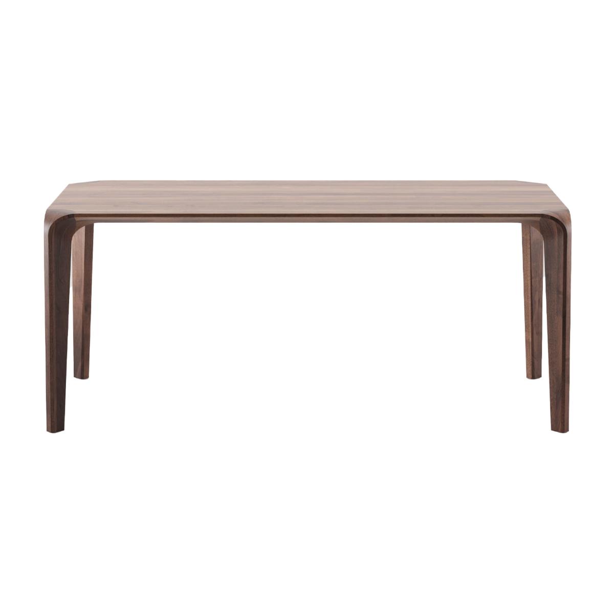 I love this table for its clean, modern lines and warm walnut finish, making it a versatile piece that can anchor both contemporary and more traditional interiors. It works particularly well in open-plan dining areas or kitchens that favour a minimalist aesthetic, providing a timeless look with a touch of natural richness. Practical styling tips include pairing it with upholstered chairs in neutral tones for a sophisticated vibe, or adding colourful placemats and accessories for a more inviting, lived-in feel. Its simple form allows it to suit a variety of decorating schemes, and its size makes it ideal for both everyday family meals and more formal dinner parties.