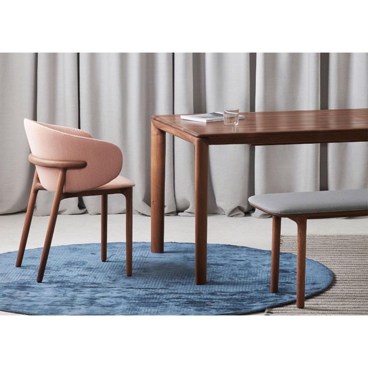 An ongoing flow of soft lines defines elegant units; it respects ergonomics and sophisticatedly rounds off an understated yet identifiable aesthetics. Like typeface, certain elements reappear in variations of clearly defined hallmark traits, characteristic strokes whose soft wood lines trace out the desired form, adapting themselves to the use by altering the line flow. Seating furniture variations are completed with practical cabinets, all subtly connected by a common aesthetic with a chance of creating a pleasant ambience out of similar elements. Thanks to their unobtrusive beauty, the elements from the Neva collection gracefully fit in already established interiors and adapt themselves to them, refining them while never losing their distinction.