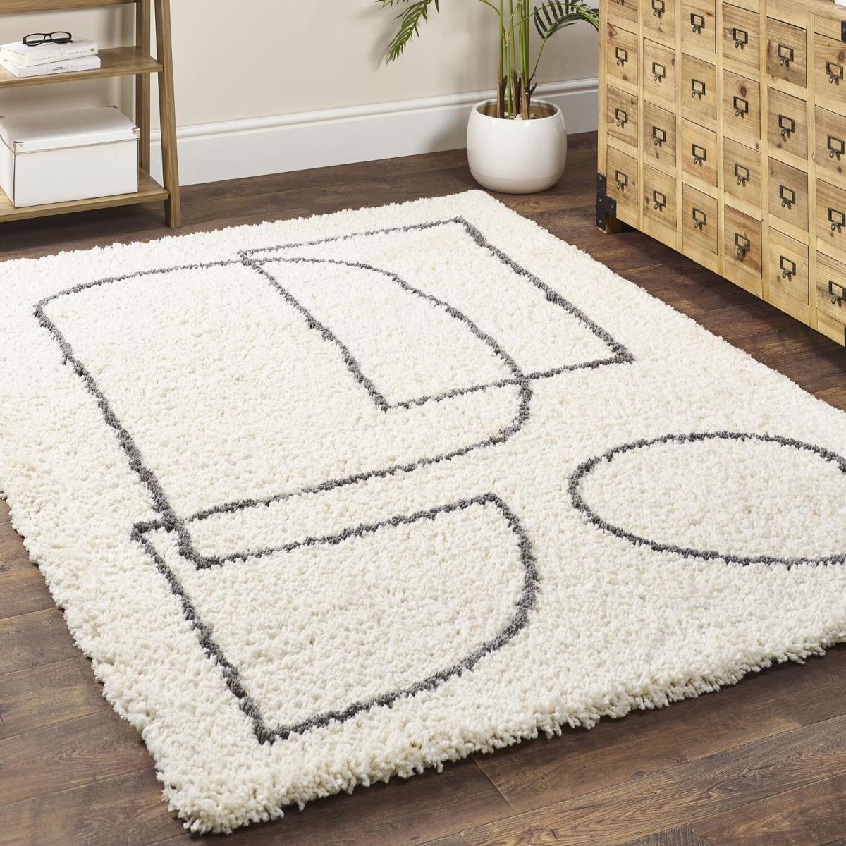 I love this piece because its minimalist design and neutral tones make it incredibly versatile for a range of interiors. The white and grey palette works especially well in modern, Scandinavian, or contemporary spaces, adding a fresh, clean look without overwhelming the room. It’s great for creating a cosy feel underfoot in living rooms or bedrooms, and the playful geometric pattern adds visual interest without clashing with other decor. For styling tips, consider pairing it with soft furnishings in muted colours or adding vibrant accessories for a pop of colour. Its size makes it suitable for smaller sitting areas or as a statement piece in a larger open-plan space.