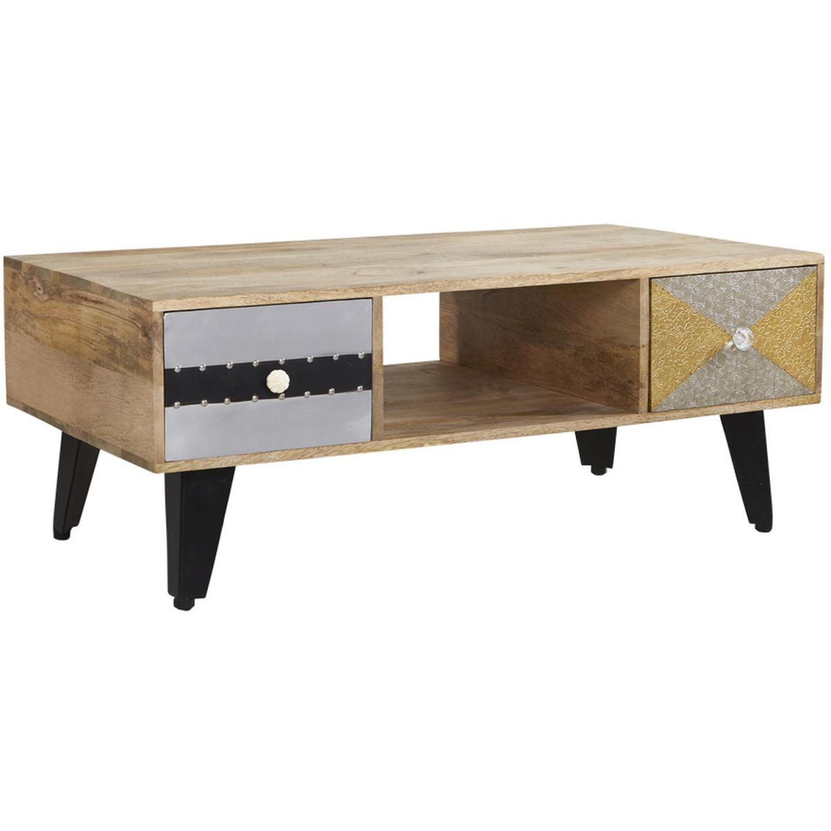 Artisan 4 Drawer Coffee Table provides you with a large area for your snacks to be placed, and will be a great addition to your home. Hand crafted in India from 100% reclaimed wood and fronts of which have a varied range of finishes and handle styles is beautifully intricate and detailed that will suit a wide range of modern interior styles. Artisan Coffee Table has two full depth drawers on each side, offering ideal concealed storage for all your living room bits and bobs. The table also holds an open central storage shelf, perfect for storing magazines, remote controls and other essentials you need easy access to.