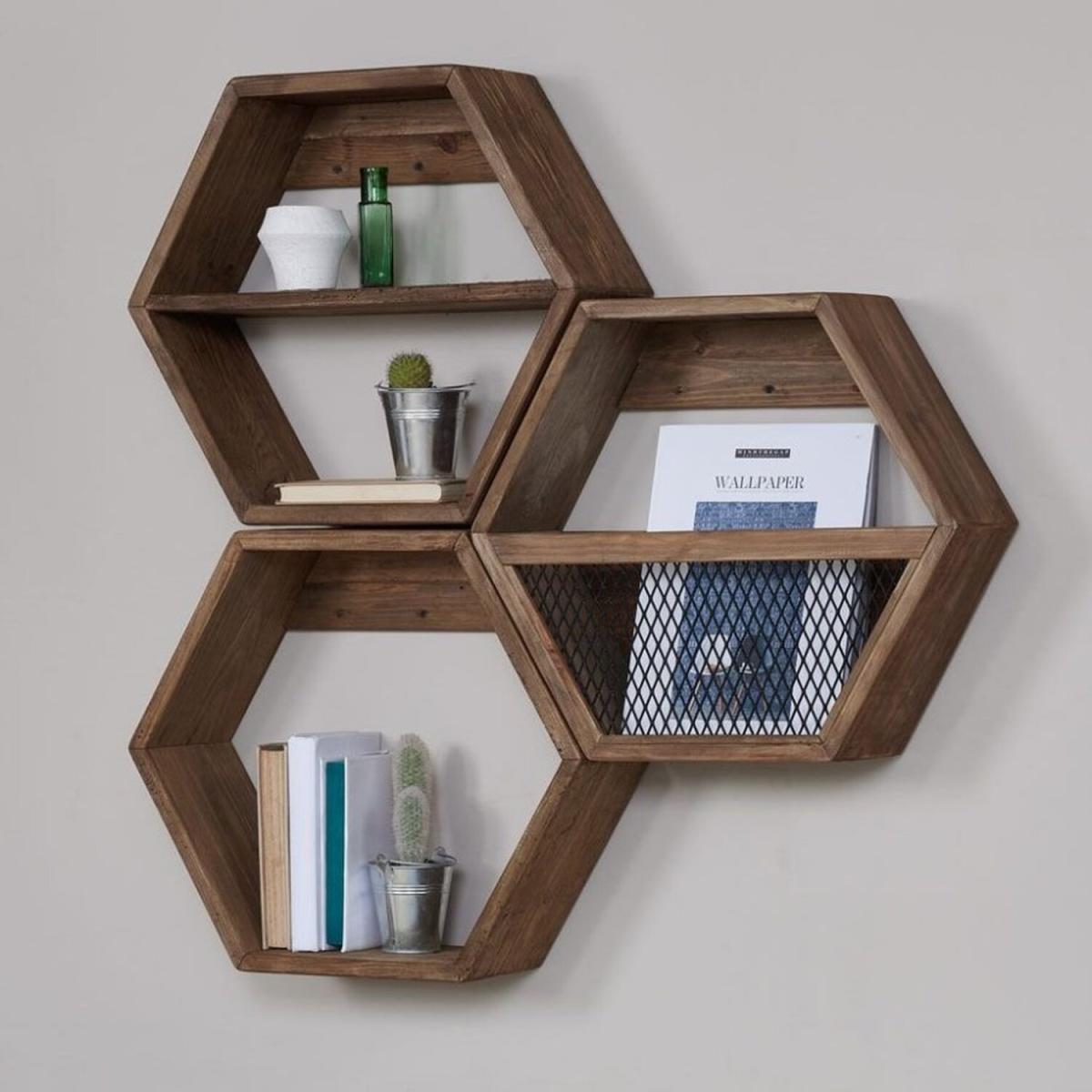 I really like this hexagonal shelf because of its clean, geometric shape and warm brown tone, which makes it versatile for various interior styles. It works particularly well in contemporary, minimalist, or Scandinavian interiors, adding a touch of natural texture without feeling bulky. Practical styling tips include using it to display small plants, books, or decorative objects for an organised yet inviting look. Its shape also makes it excellent for creating visual interest on a blank wall or as a focal point in an alcove. Overall, it’s a simple piece that offers both form and function, perfect for adding character to your living space.