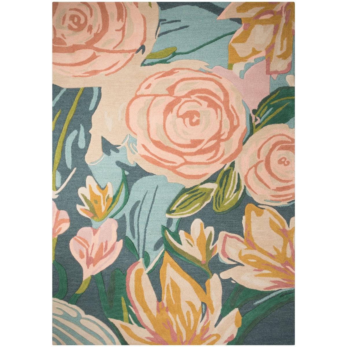 The original design was hand-painted by our in-house British design team, the Artist Floral Wool rug really is art for your floor. Vibrant colours blend into one another to create the intricate floral image. Hand tufted in 100% wool by skilled artisans in India, the quality composition maximises warmth and softness underfoot. We love using the Artist Floral Wool rug to add a feminine touch to bedrooms and living rooms, a statement show-stopper. Don. ’. T forget to buy our anti-slip mat. Here. , available in a choice of sizes. This is a dense hand-made rug. When opening, re-roll your rug pile out and leave in a warm room for 24 hours before putting in place, this will help to reduce wrinkles and curling from packing. Do not pull any loose threads, please cut them carefully with scissors to remove. Avoid prolonged exposure to direct sunlight as this may cause fading of the colour. Turn your rug regularly to ensure even wear and to reduce pressure marks from furniture. Wool fibres may shed when new and during use, this is a characteristic of this product and is not a defect and should reduce with normal use and regular vacuuming. Before using any cleaning products on your rug, test on an inconspicuous area first to ensure it does not affect the colour. Clean spills immediately by blotting with a clean dry white cloth - do not rub as this may stain the fibres. Vacuum your rug regularly to remove everyday dirt, we recommend the use of a suction type vacuum cleaner as a rotating vacuum brush can cause damage to the pile surface. We recommend the use of an anti-slip mat beneath your rug to prevent it from slipping and sliding out of place. Latex is used on the back of this rug. Please do not leave babies or young children unsupervised on this rug.