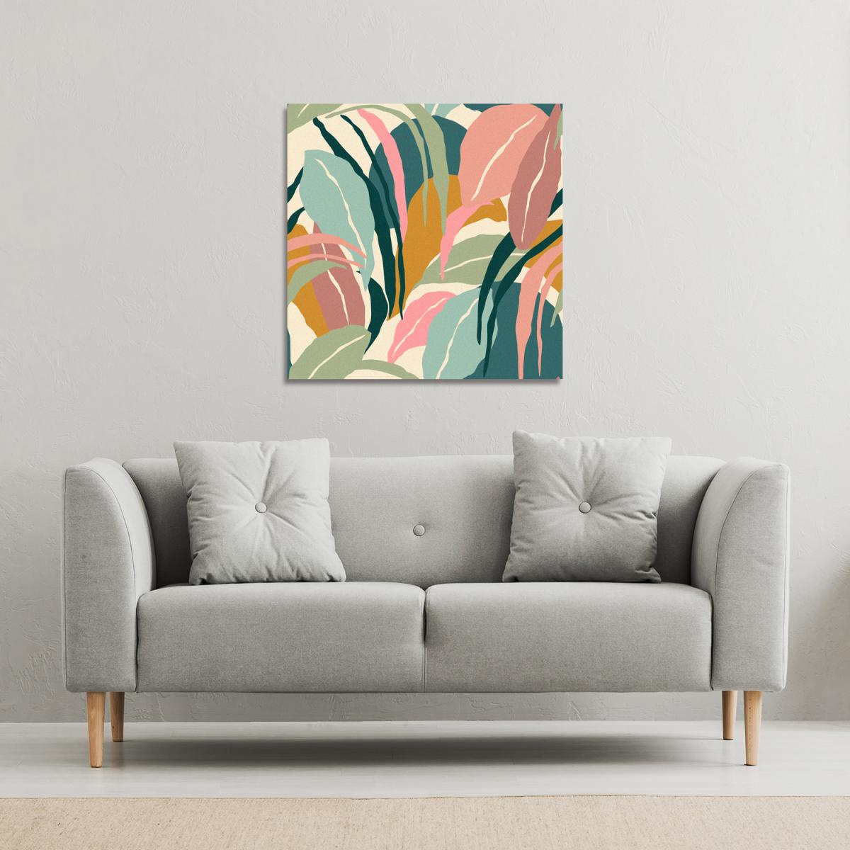 I love this abstract leaves canvas print for its bold use of colour and contemporary design, making it a versatile statement piece. It works particularly well in modern or boho interiors where natural motifs and vibrant colours are appreciated, but it can also add a lively contrast to more neutral spaces. To style it effectively, consider pairing it with solid-colour cushions or throws that pick up one or two colours from the print, creating a cohesive look. It’s a great size, so positioning it above a sofa, sideboard, or bed will really help it to stand out without overwhelming the space. Keep the surrounding decor minimal to let the artwork do the talking.