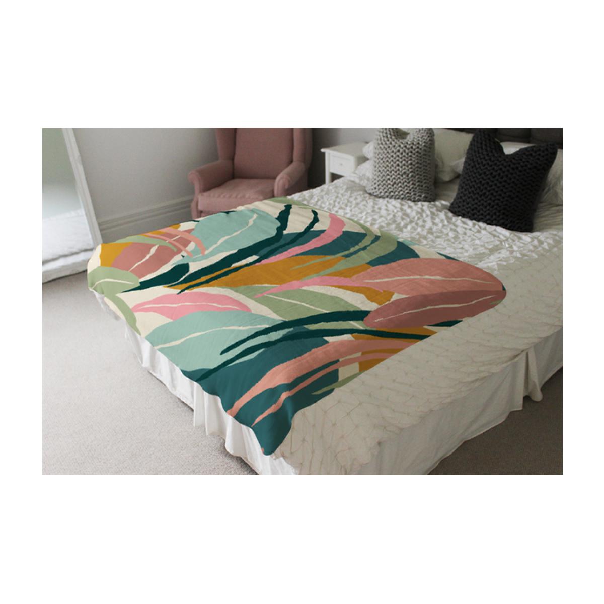 I love the Artistic Abstract Leaves throw for its vibrant yellow hue and bold, nature-inspired pattern, which can instantly brighten up a neutral sofa or bedspread. It works especially well in contemporary or boho interiors, adding a splash of colour and visual interest. For styling tips, try draping it casually over the back of a sofa or folding it neatly at the foot of the bed to introduce colour without overwhelming the space. Pair it with textured cushions or plants to create a relaxed, inviting look. Its lively design makes it a versatile piece to liven up both minimal and eclectic settings.