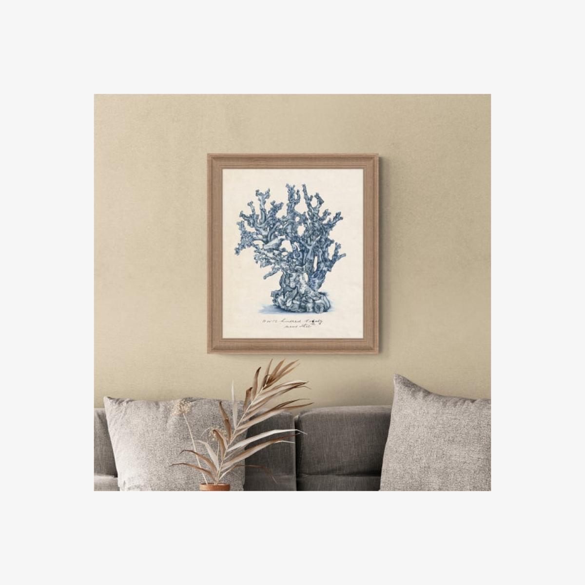 * Glass-free textured finish * Birch coloured frame * Detailed illustration * Great for coastal themes Bring the calming atmosphere of the ocean into your home with the Artko Blue Sea Coral 1 Framed Print. This intricate blue coral illustration by Melissa Wang captures the essence of classic scientific illustration, offering a subtle vintage aesthetic. Presented in a birch-coloured stepped frame with a unique textured finish and no glass, this print is ready to hang, making it an ideal addition for coastal or nautical-themed interiors.