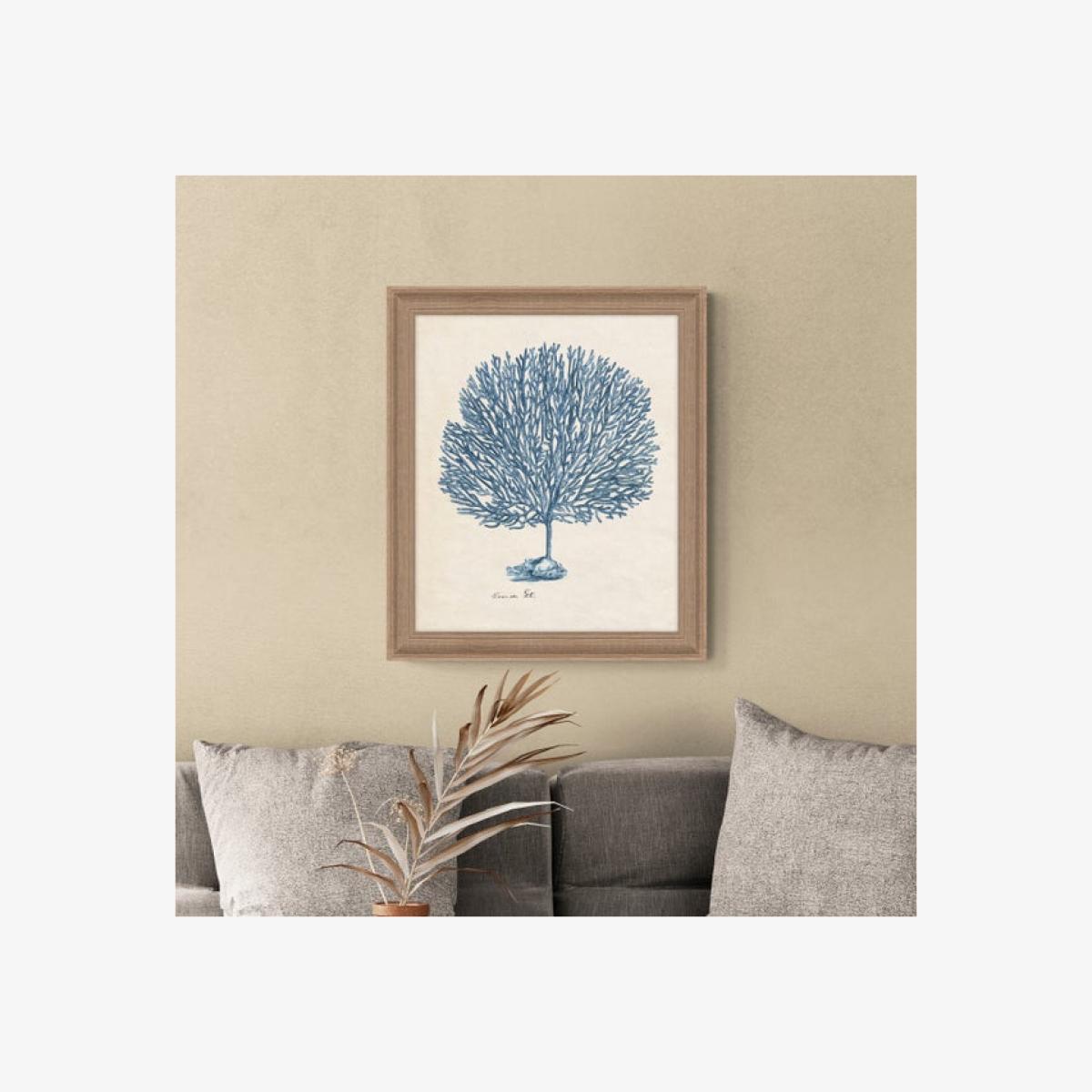 * Detailed coral illustration * Birch coloured frame * Textured glass-free finish Bring the serene beauty of the ocean into your home with the Artko Blue Sea Coral 3 Framed Print. This intricate blue coral illustration by Melissa Wang captures the essence of classic scientific illustration, offering a subtle vintage aesthetic. Presented in a birch-coloured stepped frame with a unique glass-free textured finish, this print is ready to hang, making it an ideal addition for coastal or nautical-themed interiors.