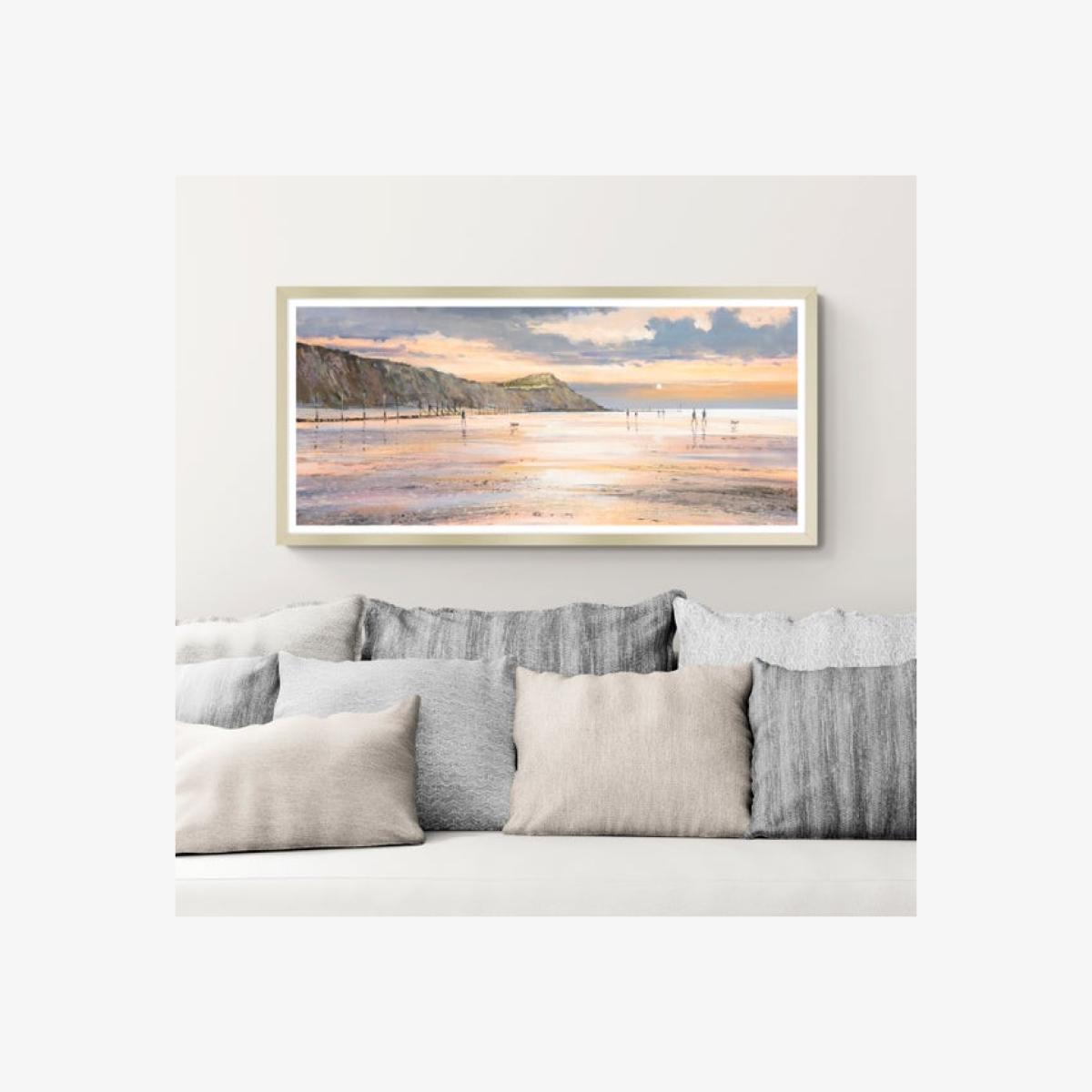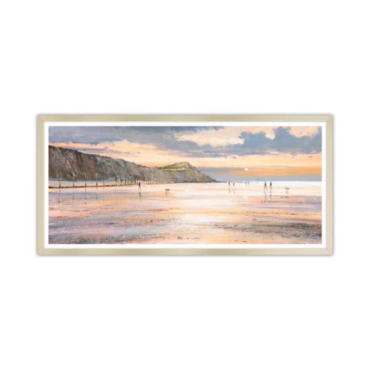 * Framed print * Textured finish * Glass-free framing * Calming coastal scene Bring the calming beauty of a coastal evening into your home with the Artko Evening Stroll Framed Print. This peaceful landscape by Michael Sanders captures a serene sunset scene, complete with gentle pastel colours, reflective water, and seaside details including serene walkers. Presented in a wide format, the print features a textured finish with no glass, and a narrow white border. It's set in an elegant champagne-coloured frame and comes ready to hang, making it simple to add a tranquil touch to your space.