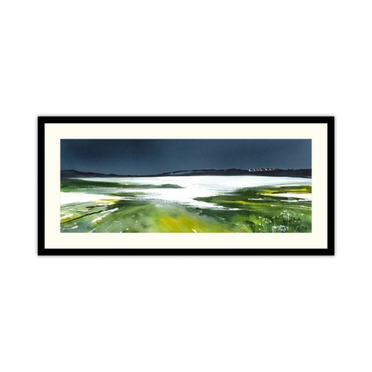 * Panoramic artwork * Contemporary style * Abstract landscape * Framed print Immerse yourself in the captivating beauty of the Artko Late Night Walk Framed Print, featuring a striking night landscape scene by artist Elizabeth Baldin. This wide panoramic composition showcases a contemporary watercolour technique, with vivid green and deep blue contrasts that draw the eye. Expertly mounted with a glass finish and presented in a grained black frame, this piece is ready to hang and bring a dramatic, artistic touch to your space.