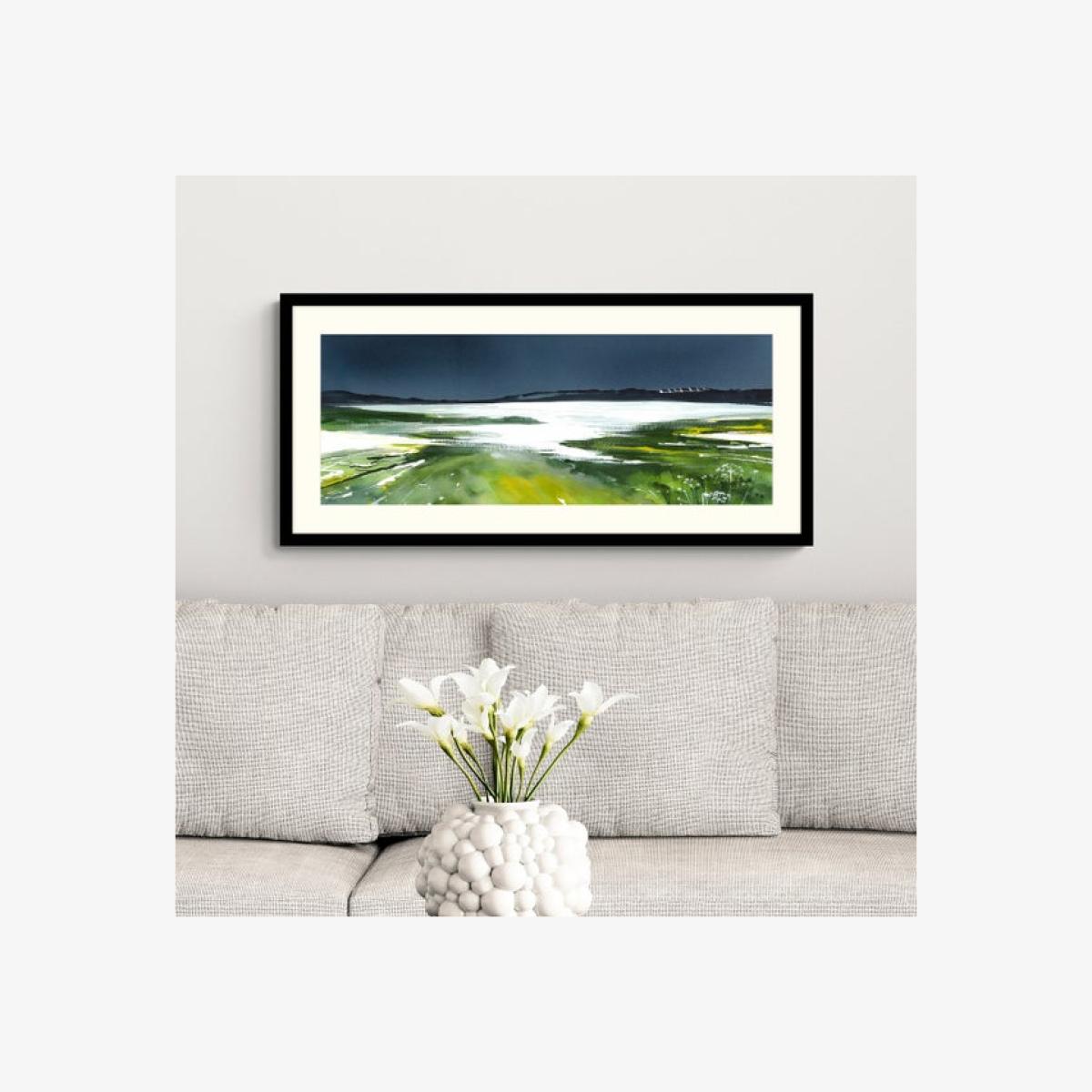 I love this print for its calming hues and contemporary aesthetic, making it a versatile piece for various interiors. The scene’s subdued colours work especially well in minimalist or Scandi-inspired spaces, where it can add a touch of serenity without overpowering the overall decor. It also lends itself well to modern living rooms or bedrooms, adding visual interest above sofas or beds. For practical styling, consider pairing it with neutral-toned furnishings and natural textures to amplify its tranquil vibe. Additionally, a sleek black frame like this helps to ground the artwork and can coordinate effortlessly with other black accents in the room.
