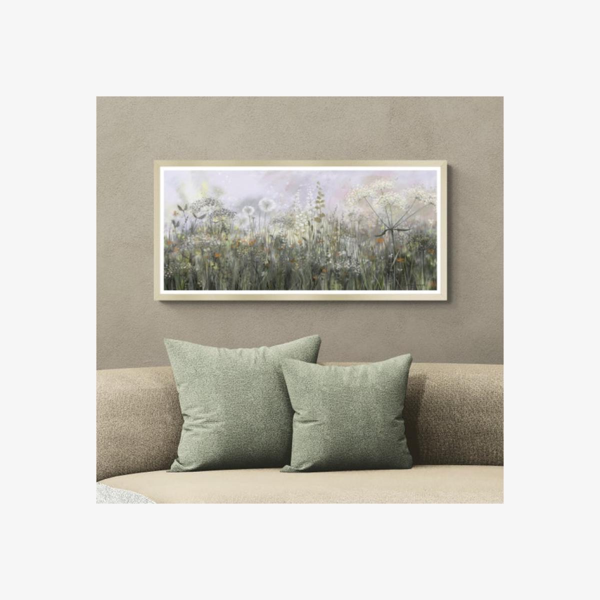 I love this Meadow Whisper print for its calming colour palette and subtle, nature-inspired design. It works particularly well in neutral or pastel-toned interiors, especially in living rooms or bedrooms where you want to create a relaxing atmosphere. For styling, consider pairing it with soft furnishings in complementary shades-think muted greens, greys, or creams-and keep the overall look minimal to let the artwork stand out. It’s versatile enough to work above a sofa or bed, and its frame adds a clean, contemporary touch. For added impact, try grouping it with other nature-themed or monochrome prints for a curated gallery wall.