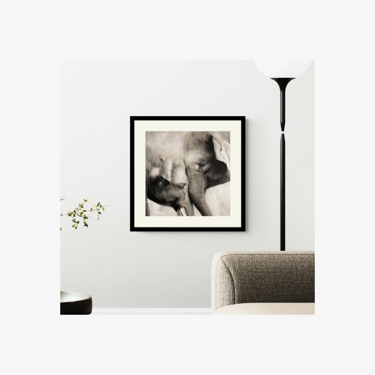 * Expressive photographic print * Framed and ready to hang * Pair of elephants Bring a heartwarming touch to your home with the Artko Much Love Elephants Framed Print. This absorbing piece by Galaxy Studio offers a tender, close-up portrait of a pair of elephants, highlighting their emotionally expressive features. The classic monochrome style print with rich textured detail is beautifully framed in a stylish grained black frame, and is ready to hang, making it an effortless way to add a deeply felt wildlife image to your space.