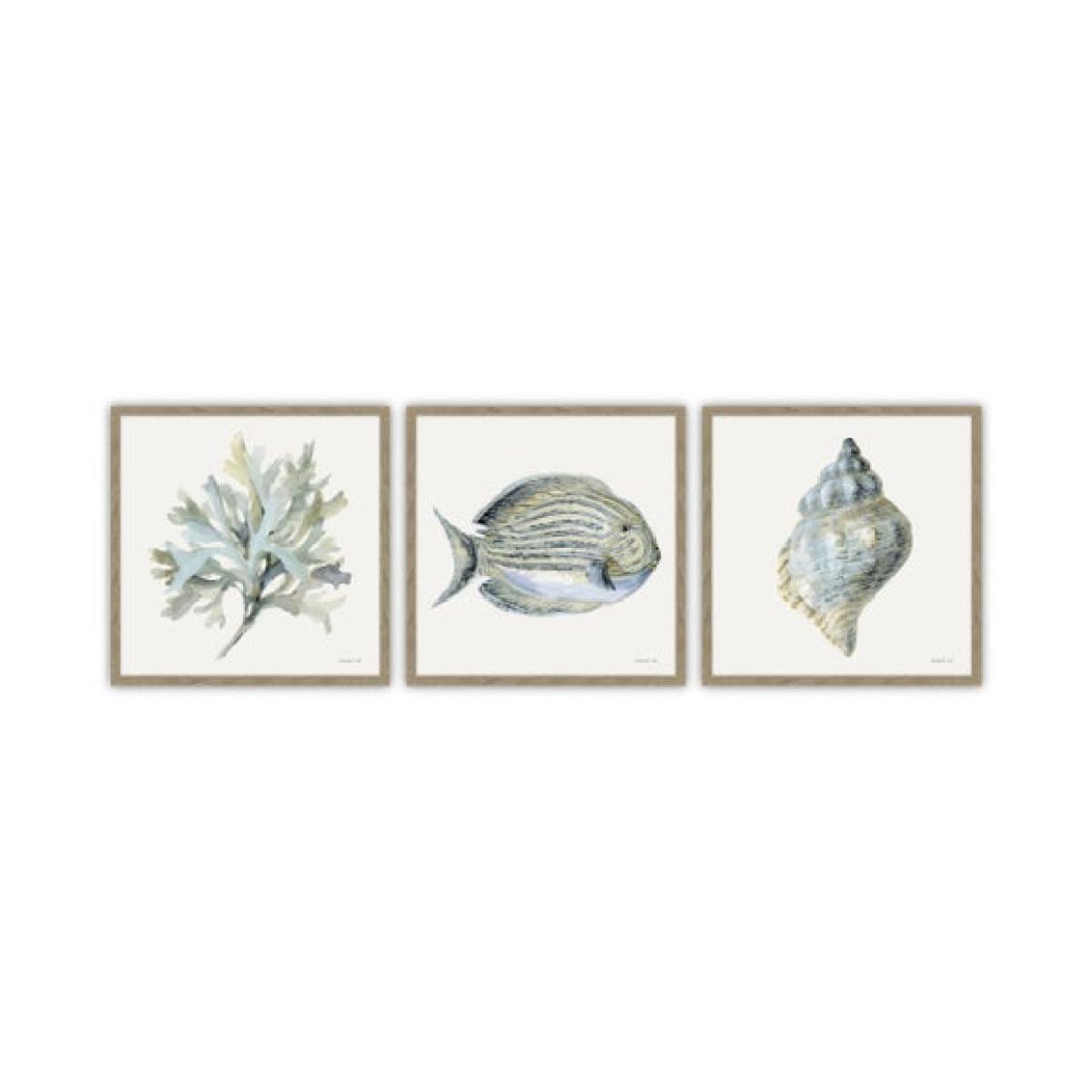 * Set of 3 * Framed prints * Calming sea tones * Textured glass-free finish Bring the calming essence of the seaside into your home with the Artko Set of 3 Coastal Bliss Framed Prints. This coordinating trio features beautiful coastal-themed watercolour artwork by Danhui Nai, showcasing soft aquatic hues and organic forms. Each print boasts a textured finish (no glass) and is presented in a birch-coloured frame, ready to hang and perfect for creating a serene beach or nautical-inspired interior.