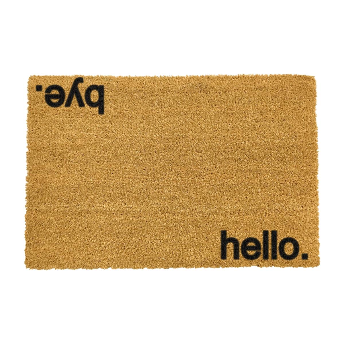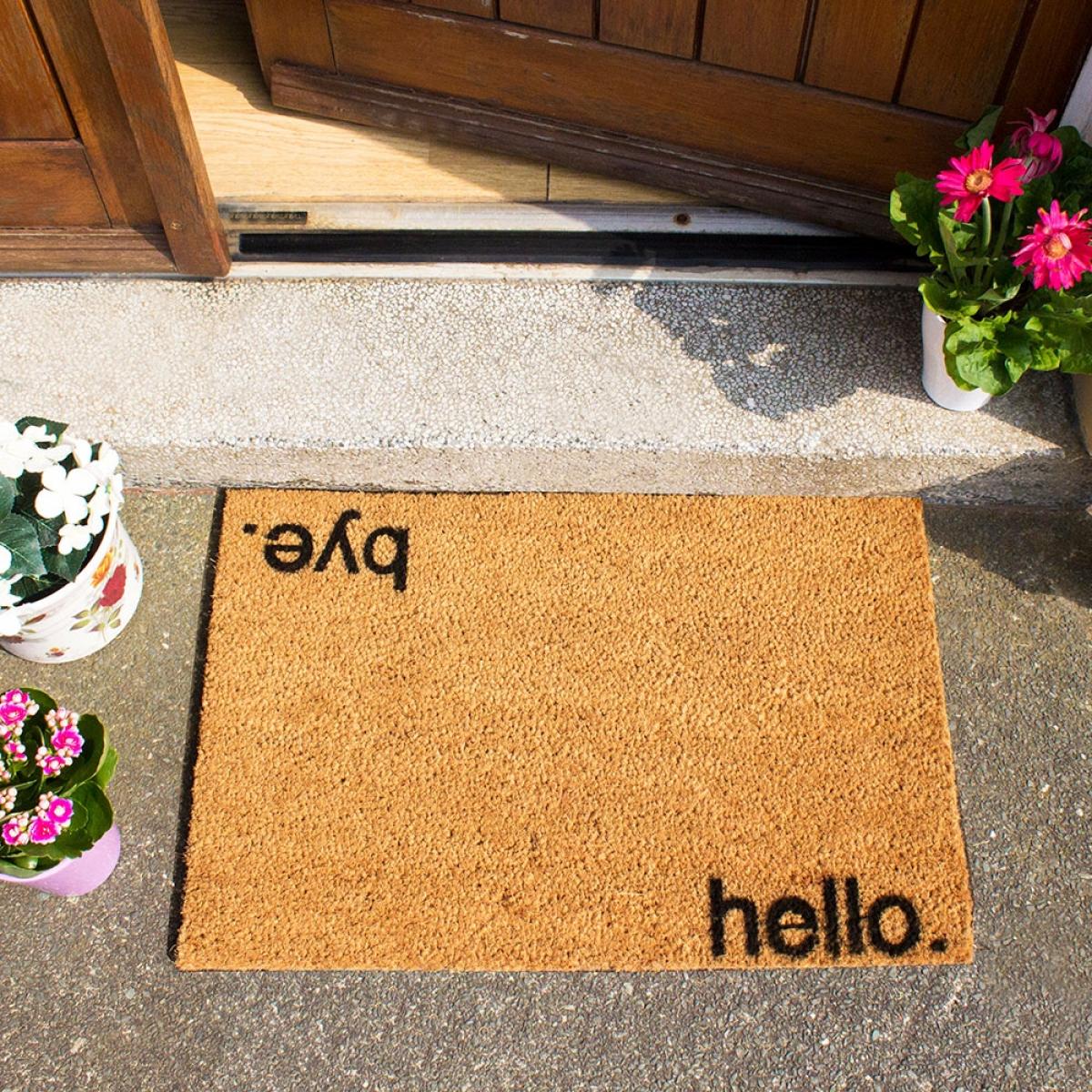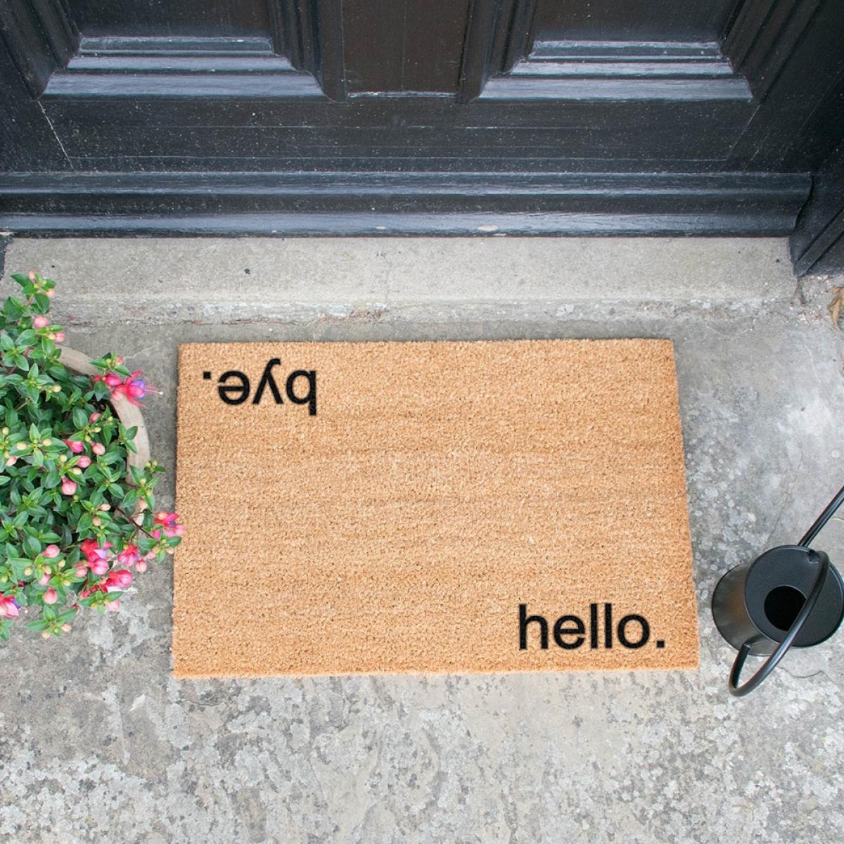 Greet your guests before you even open the door with the Artsy Doormats Hello Bye Door Mat!Hand-finished in the UK with durable and long-lasting paints, the 'hello' and 'bye' greetings are sure to get a cheeky chuckle from your guests. Just make sure it's not the wrong way around! That could be awkward. Made with a non-slip back and a natural coir coconut fibre mat, it's perfect for keeping those mucky footprints outside! Suitable as an outdoor or indoor door mat and with lots of lovely designs to choose from, pop one at every exit or give one as a gift. From funny doormats to patterned designs, there's one for every home!.