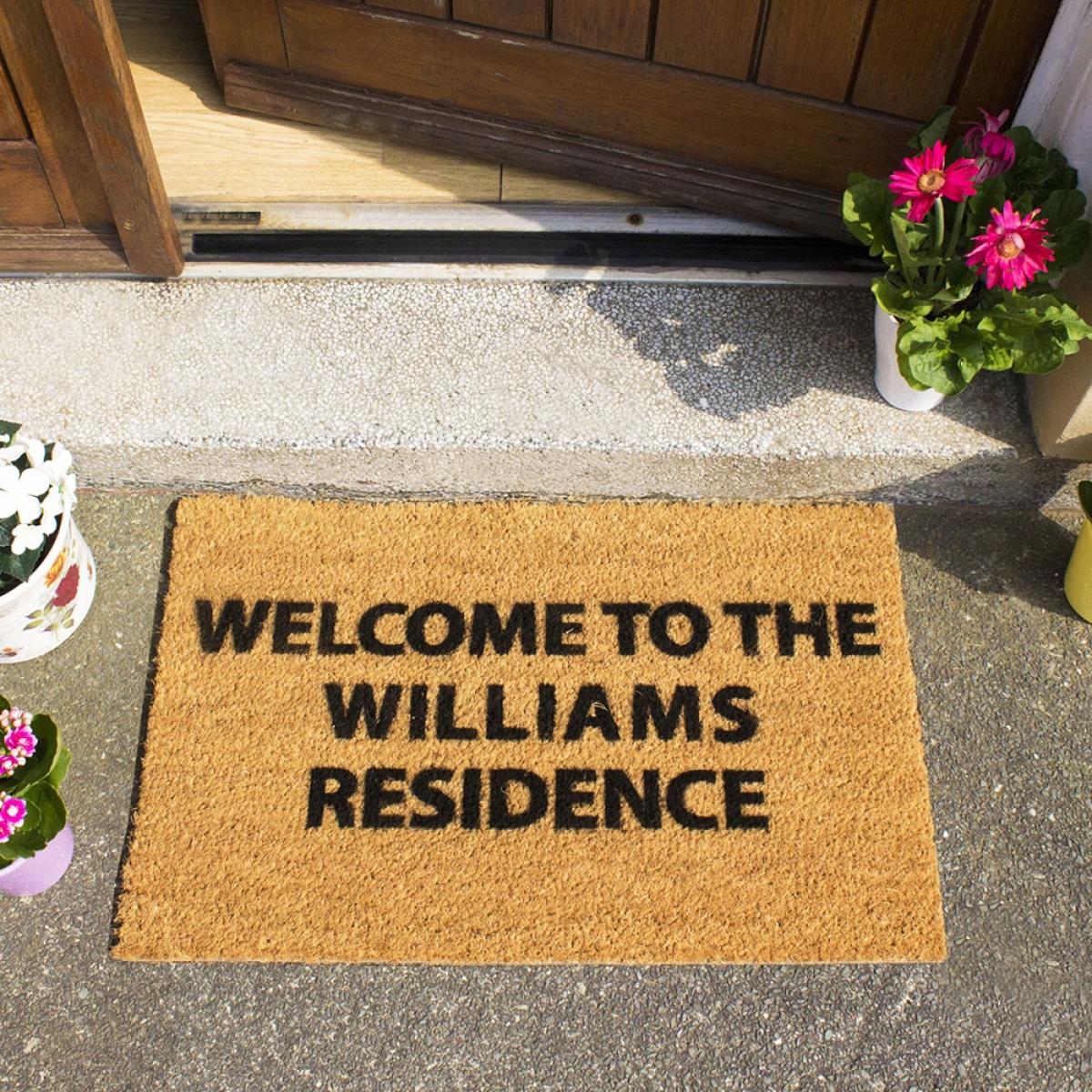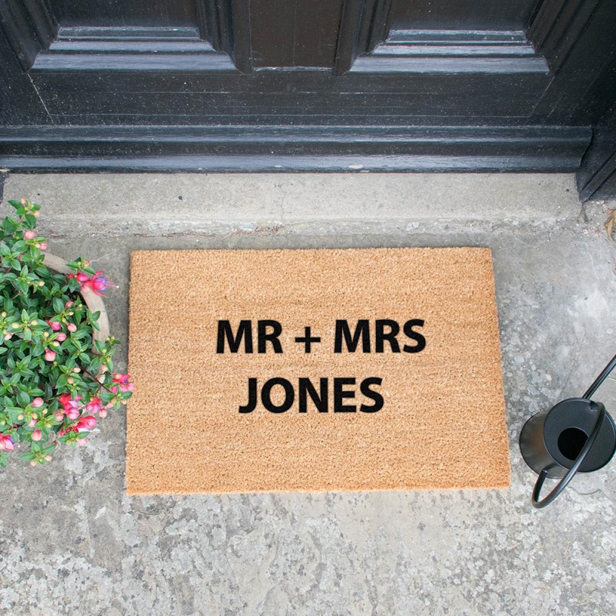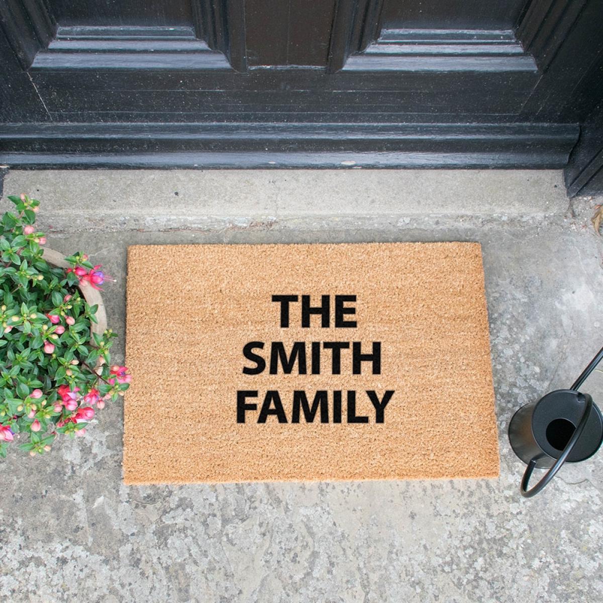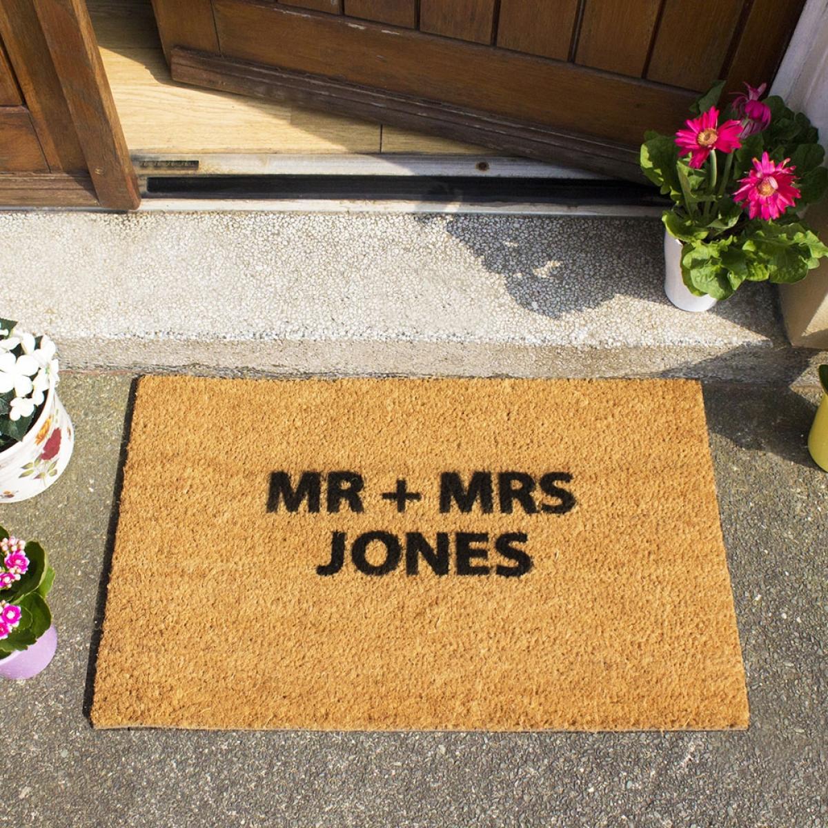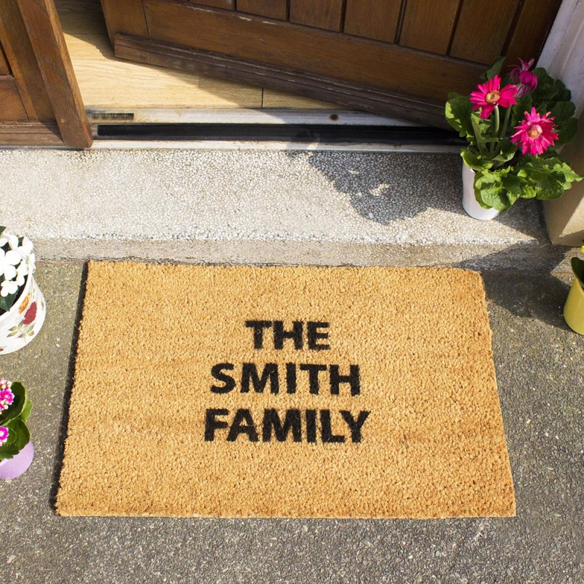 The perfect moving in gift, wedding present or just to replace your own welcome mat; create your own message with the Artsy Doormats Personalised Door Mat! With up to 3 lines of text, each with 12 characters; personalise with the happy couples names, an inspirational quote or a cheeky joke. Hand-finished in the UK with durable and long-lasting paints, whatever your design it's sure to make a statement! Made with a non-slip back and a natural coir coconut fibre mat, it's perfect for keeping those mucky footprints outside! Suitable as an outdoor or indoor door mat and with lots of other pre-made designs to choose from, there's one for every front door!.