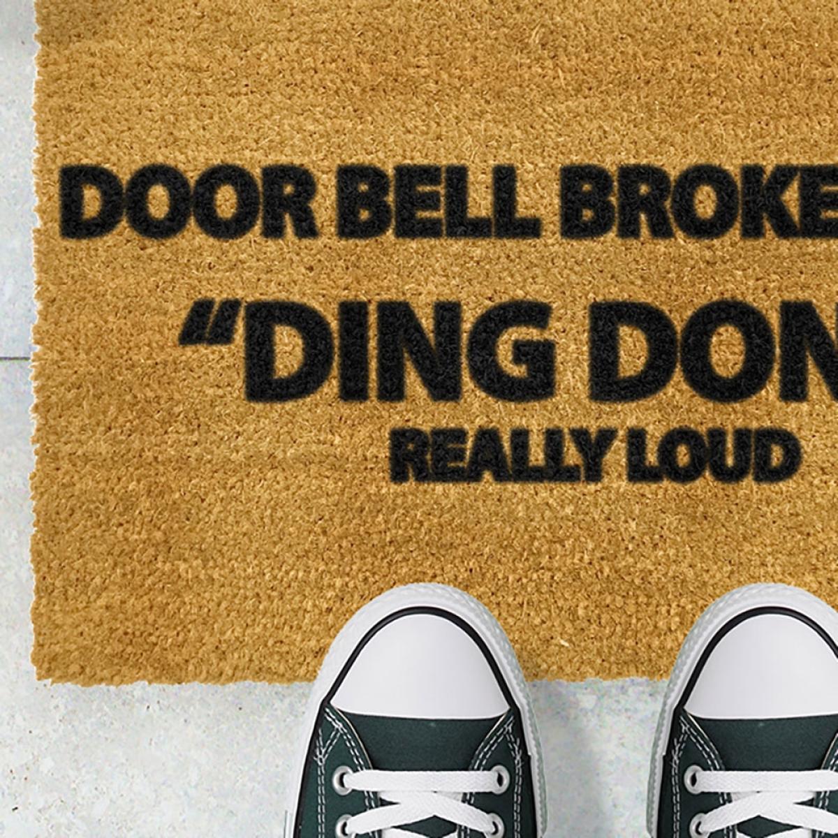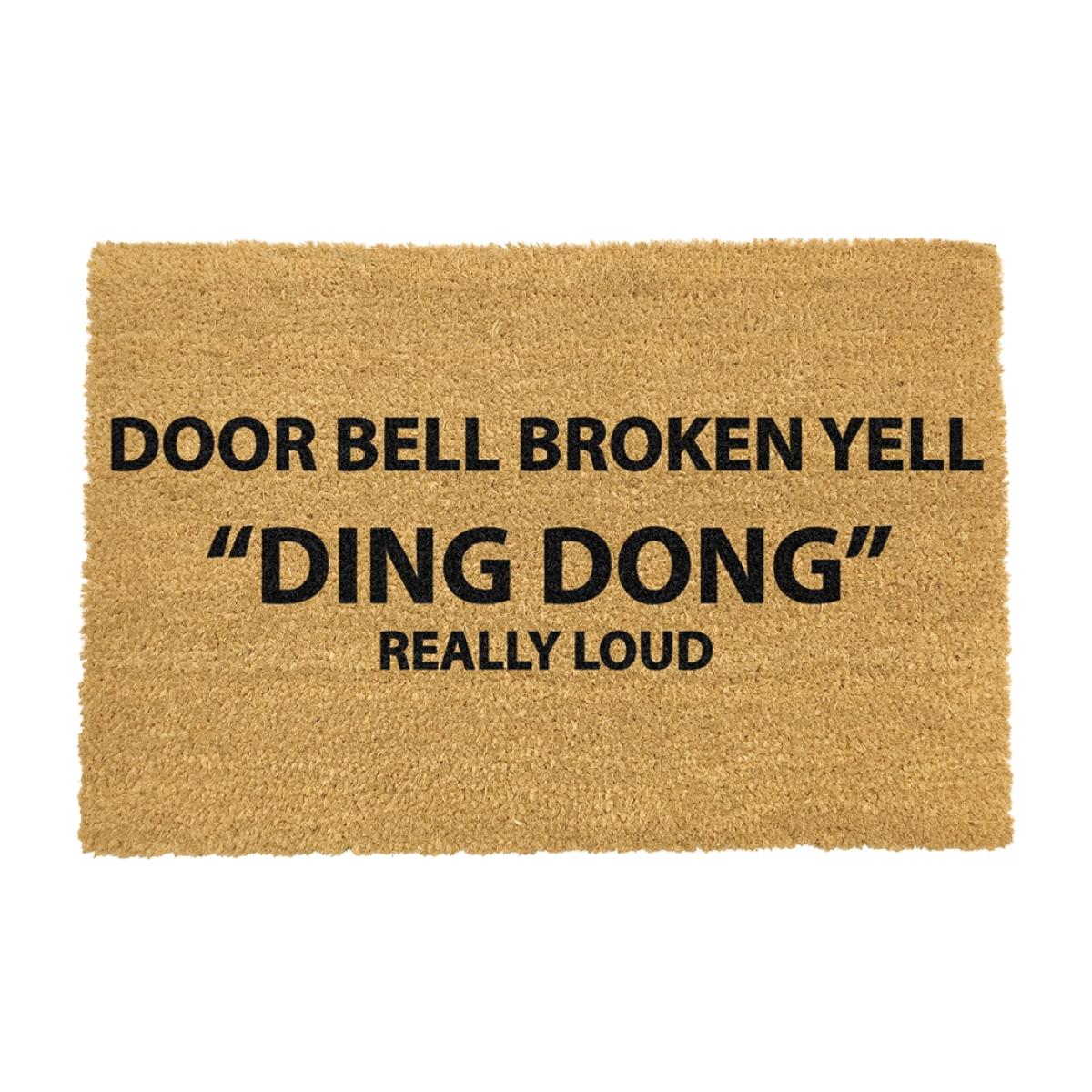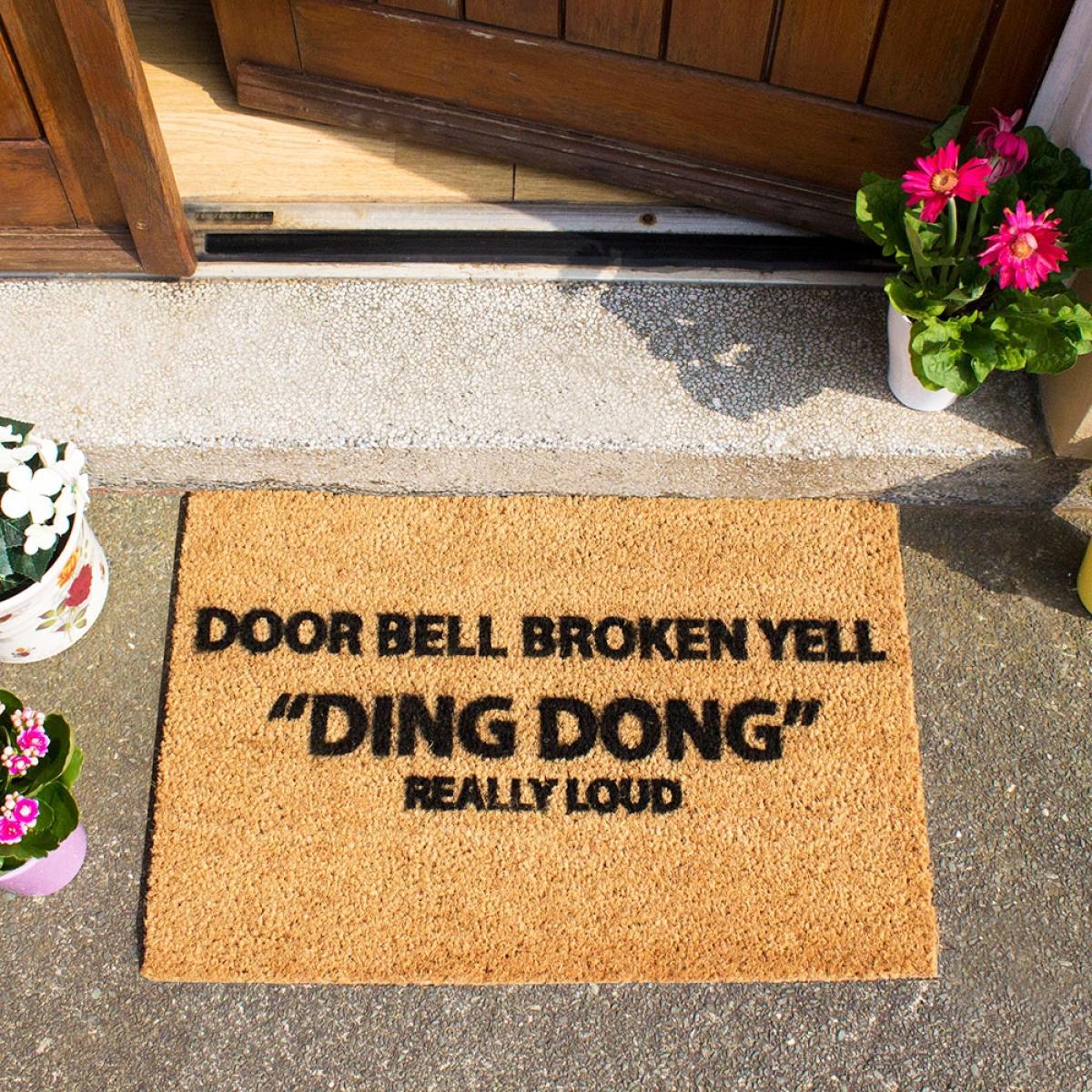 Doormats shouldn't just be for mud prevention! Make your guests chuckle with the Artsy Doormats Yell Ding Dong Door Mat! Hand-finished in the UK with durable and long-lasting paints, the bold message will even have the postman belly-laughing! Made with a non-slip back and a natural coir coconut fibre mat, it's perfect for keeping those mucky footprints outside. Suitable as an outdoor or indoor door mat and with lots of lovely designs to choose from, pop one at every exit or give one as a gift. From funny doormats to patterned designs, there's one for every home!.