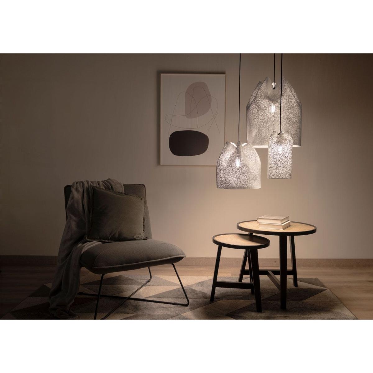 Made from an interwoven mesh cylinder, its intriguing, organic form is what defines this Agasallo Pendant Light. With a name translating to “gift” in Galician, this luxurious light exudes a beauty beyond the sum of its materials. Created by a thread simply woven through points of a mesh cylinder, the natural forming curves arise organically - a unique form resulting for each pendant. When unlit, the Agasallo looks architectural, but when lit, it transforms into a glittering suspended light - creating a special atmosphere in any room.