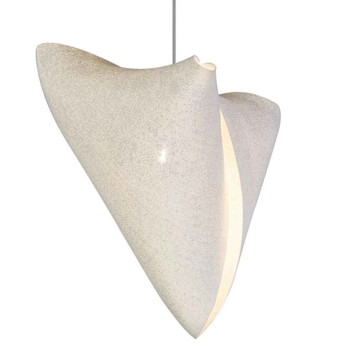 I love this pendant light for its sculptural form and sculptural presence, which can act as a statement piece in a variety of interiors. Its clean, organic shape works particularly well in minimalist or contemporary spaces, but it can also add a touch of softness to industrial or eclectic settings. Practical styling tips include hanging it above a dining table or in a hallway to draw the eye upwards. Make sure to pair it with warm, layered lighting in the room to enhance its natural elegance and avoid making the space feel sterile. Its understated colour allows it to blend seamlessly with neutral palettes or add a subtle contrast in darker or more textured interiors.