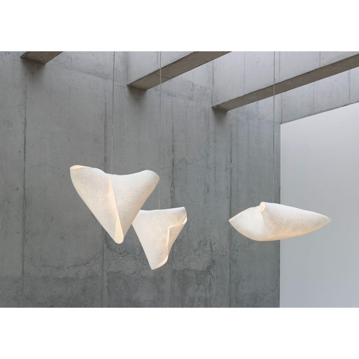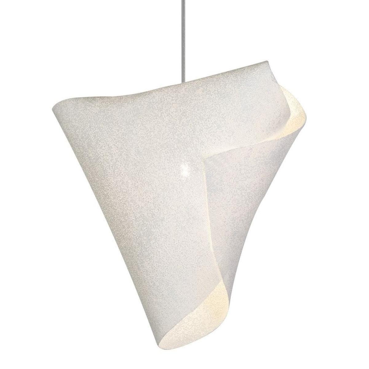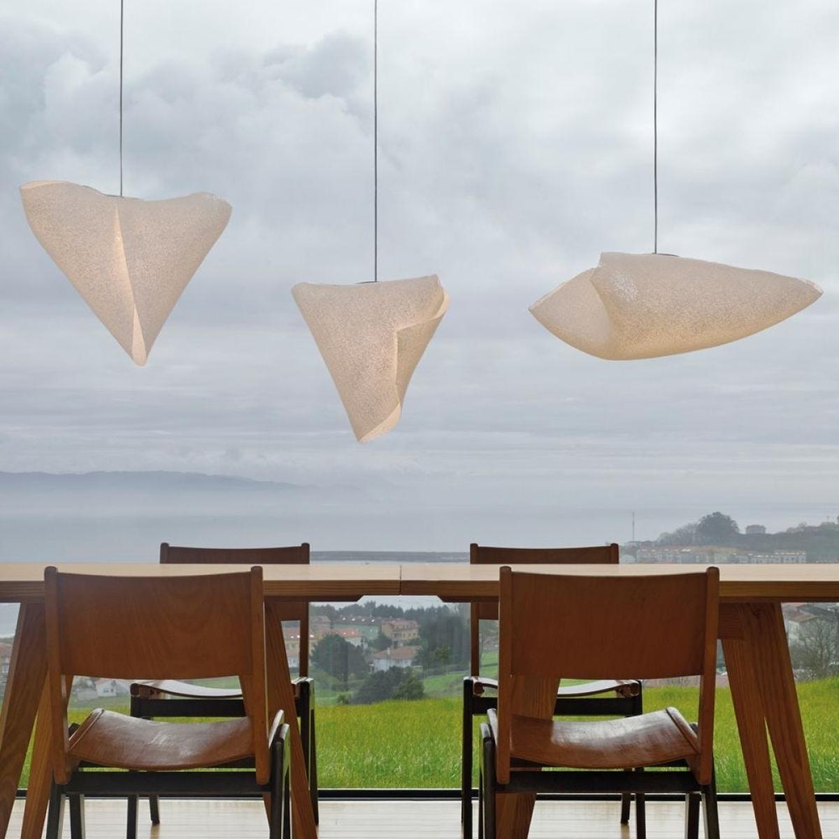 Ballet is a collection created from the experimentation with stainless steel mesh. The range consists of shapes which are formed by the superposition or gathering of their vertexes, allowing the material to freely form an asymmetrical shape. This beautiful Releve pendant will make a wonderful statement in your home.
