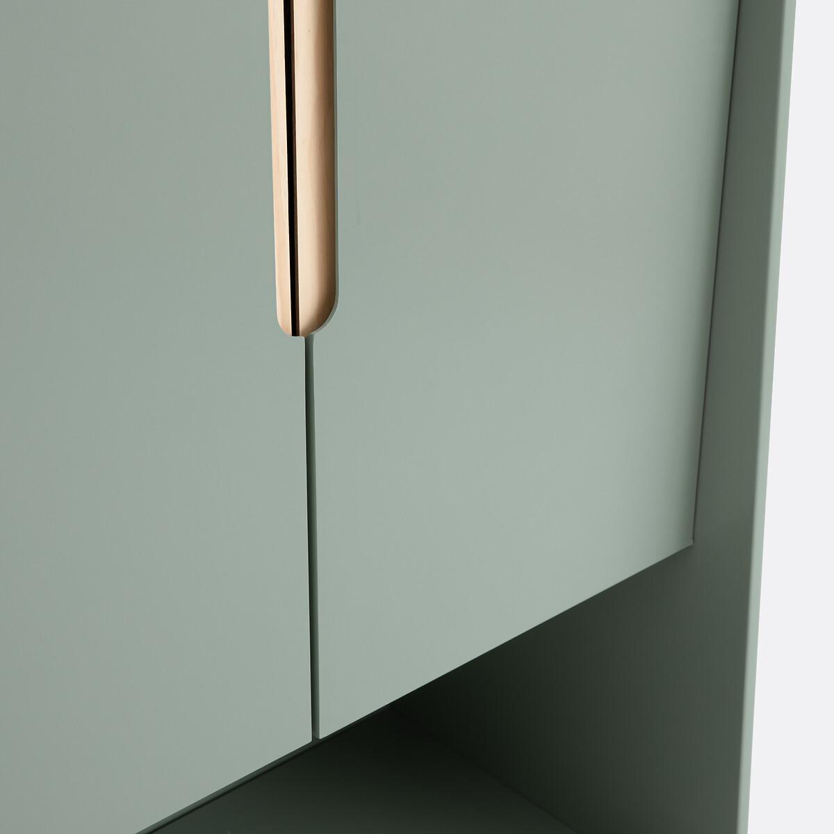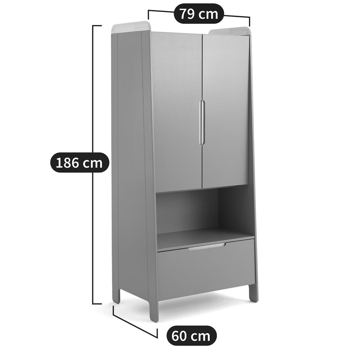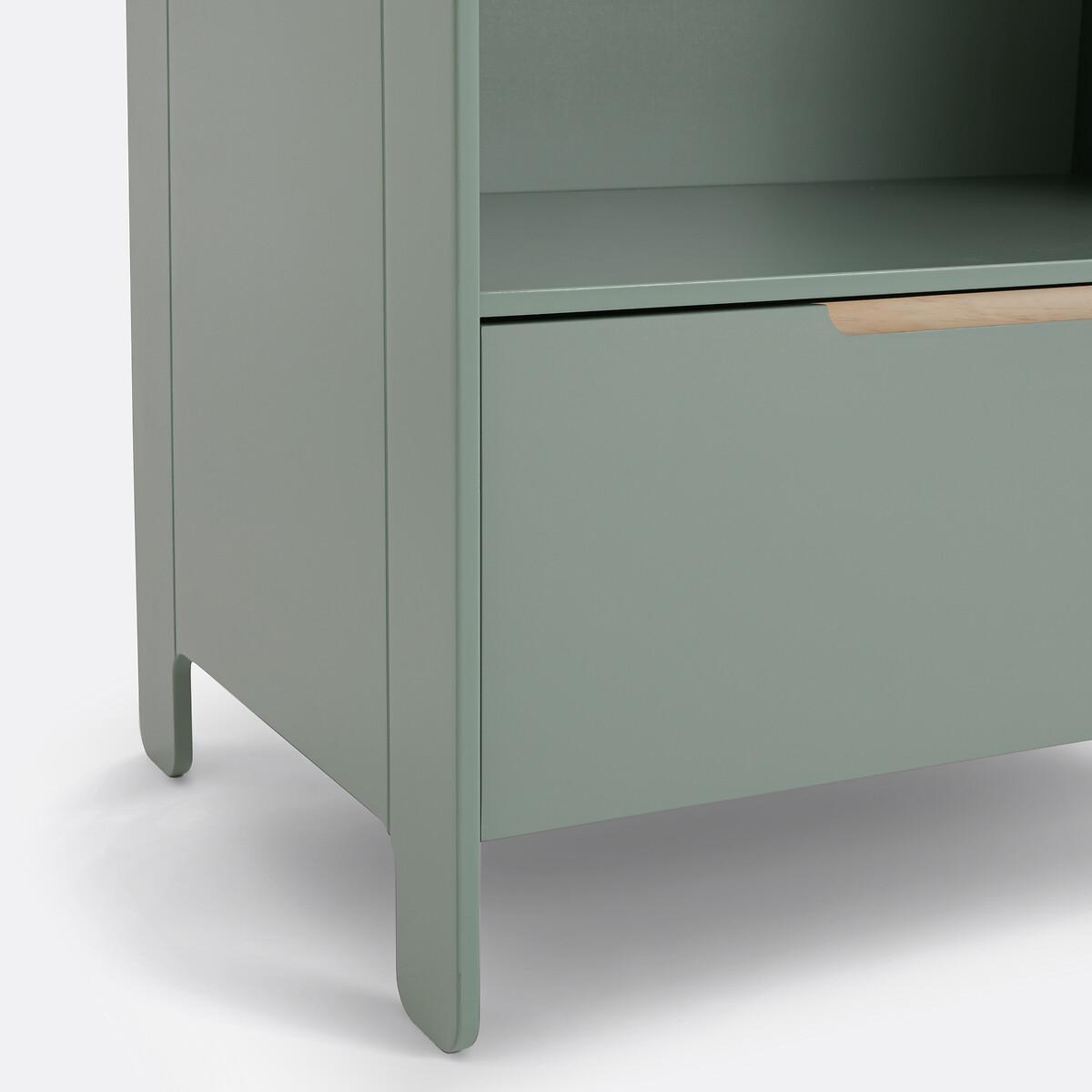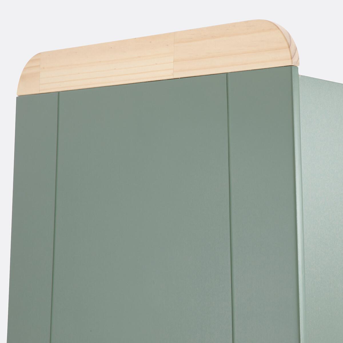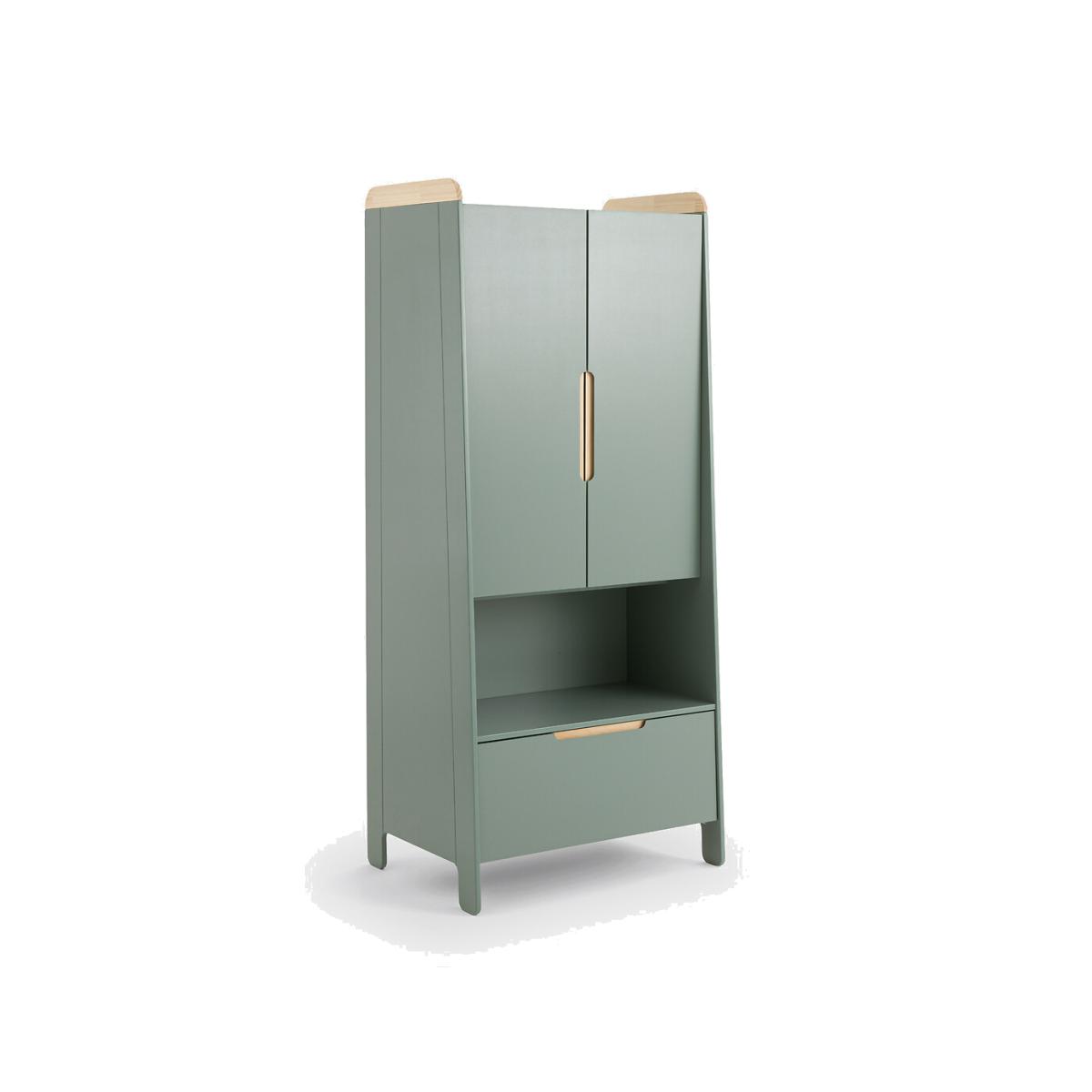 With its retro appearance, the Arturo pine cabinet lacks neither charm nor storage to decorate the children's bedroom!Pretty and practical at the same time: it has 1 wardrobe, 1 drawer and 1 open compartment: practical for keeping books and soft toys close at hand. Product Details • Structure and doors in MDF and FSC® pine • Water-based paint finish, grey green colour • 2 doors • 1 hanging space • 1 drawer • 1 storage compartmentDimensions. Overall • Width: 79cm • Height: 186cm • Depth: 60cm • Weight: 56kg. Usable space Hanging space • Width: 76cm • Height: 86.5cm • Depth: 46.8cm. Drawer • Width: 71cm • Height: 17.6cm • Depth: 38.5cm. Compartment • Width: 76cm • Height: 34.5cm • Depth: 42.6cmDelivery:. This product is sold ready to assemble. Note! Please check that all access points are large enough to accommodate your delivery (doors, stairs, lifts). • WOOD FROM SUSTAINABLY MANAGED FORESTS. FSC® certified wood comes from forests that are environmentally, socially and economically well managed. Dimensions and weight of parcel • 2 parcels • L196 x H7.2 x D66cm. 37kg. • L110 x H9.2 x D56.5cm. 22.5kg.