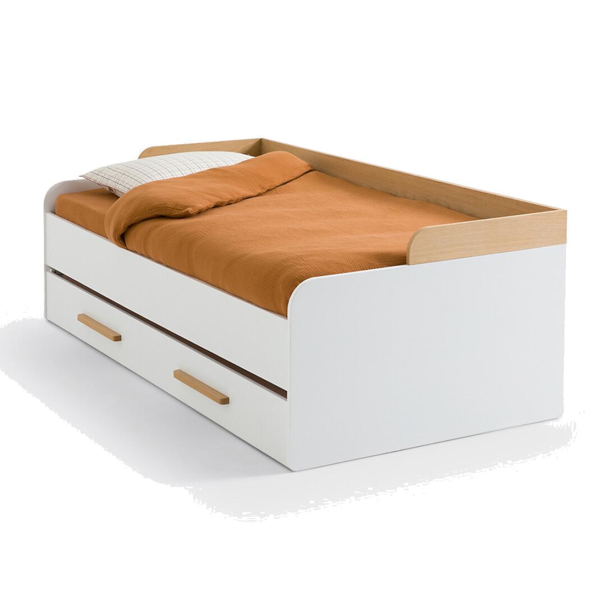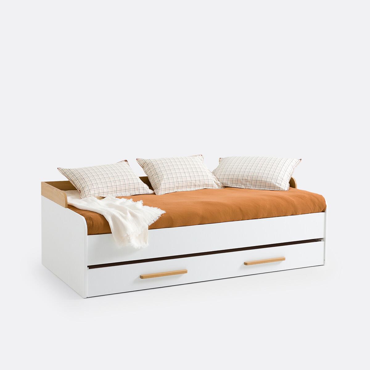 Surprise guest for the night? The Arturo trundle bed is the solution. In a few seconds, the bed is deployed thanks to its wheels and the sleepover can begin. Product Details • Lacquered MDF, acrylic finish (water-based paint without solvent) and oak veneered MDF • Solid oak drawer pull handles • Supplied with multi-ply slatted base for the main bed • Drawer-bed mounted on casters, with raw MDF base Quality Info • This product complies with current safety requirementsDimensions. Bed • Width: 95cm • Height: 62.2 cm • Length: 195.2 cm. Underbed drawer • Width: 90.2cm • Height: 12.3cm • Length: 187cm. Cot size • Bed : 90 x 190cm • Trundle bed: 90 x 180cmDelivery:. Assembly required. Available for home delivery. Note! Please check that all access points are large enough to accommodate your delivery (doors, stairs, lifts). Dimensions and weight of parcel2 parcels • L201.7 x H7.5 x D64.3 cm. 38kg. • L110 x H11.6 x D68.2 cm. 35kg.