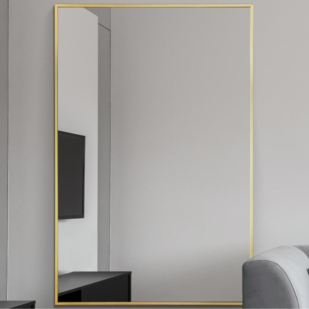 MirrorOutlet Artus Mirror range. Featuring Gold Aluminium Metal Frame With Quality Mirror Glass. This Mirror is designed to be wall hung and thus comes with fittings supplied to the rear for easy hanging Landscape or Portrait. This minimalist frame and fixings allow the mirror to be hung and sit flush with the wall. Being the very finest quality this mirror weighs around 10kgs You simply require the correct wall fixing for your wall type to easily hang this mirror.