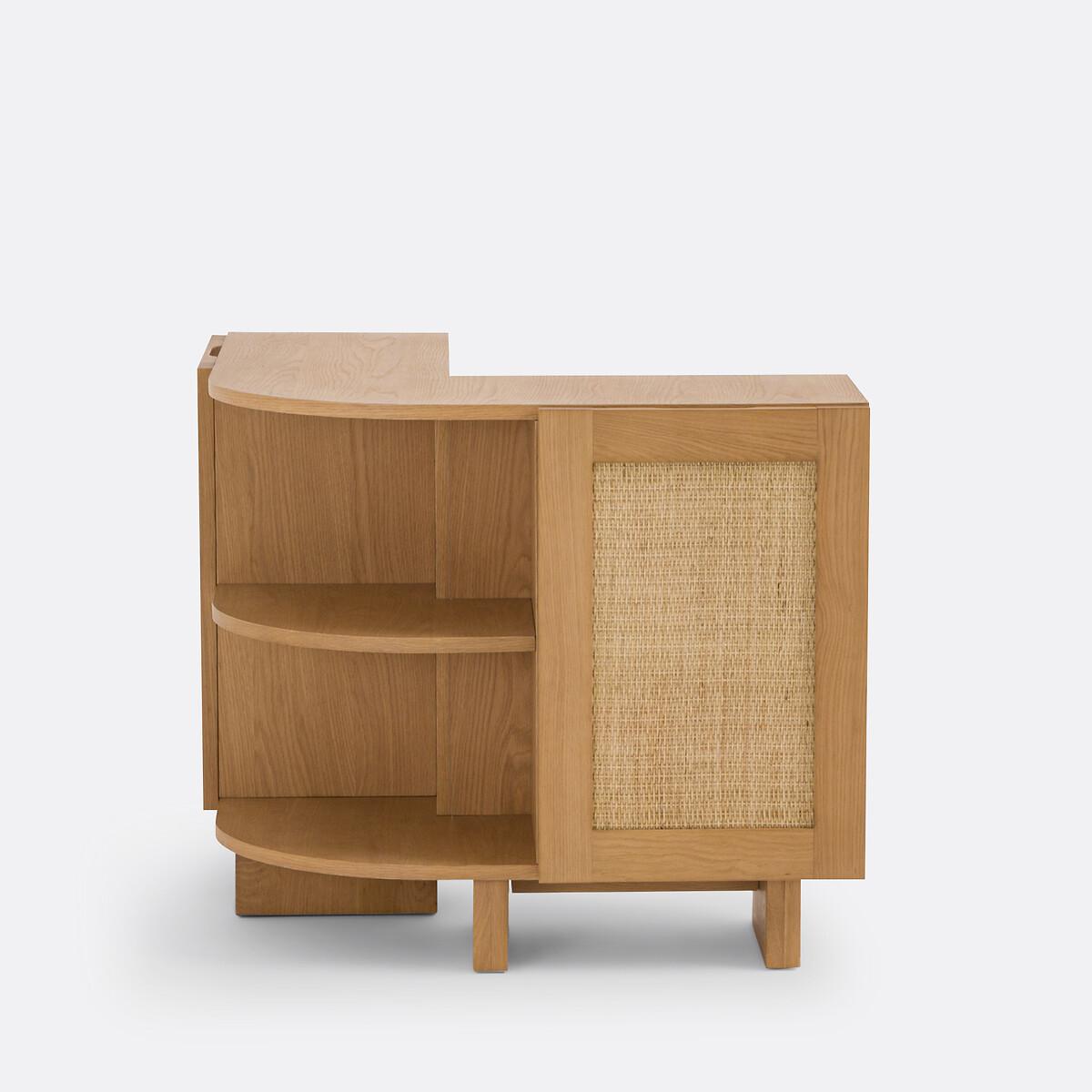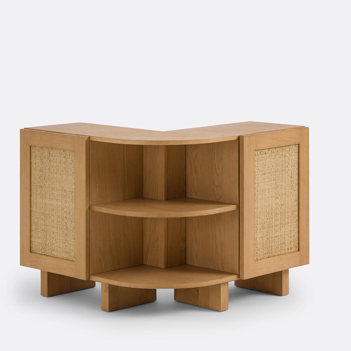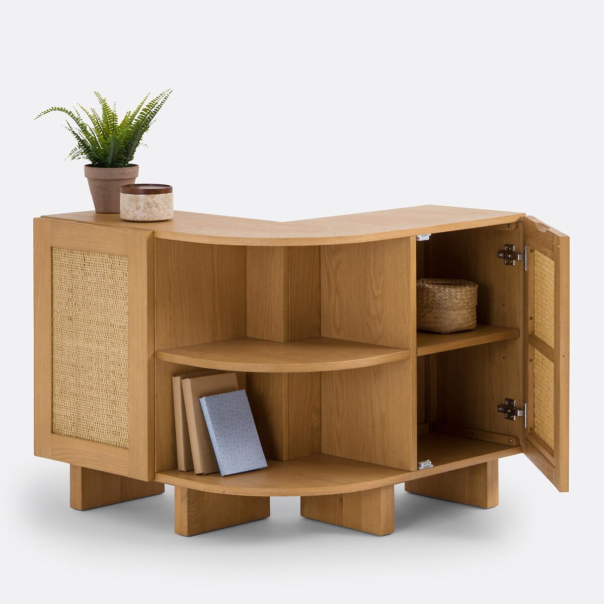 A Scandinavian style with sleek lines: the Arty range combines light tones and canework. Warm furniture, which will find its place in a bohemian style interior. Well thought out, this storage shelf allows you to upgrade the back of a corner sofa and display books and other decorative objects. A creation by our La Redoute Interiors designers, made in Europe. Product Details • Structure in solid oak with nitrocellulose varnish finish • Panels and legs in oak veneered MDF, nitrocellulose varnish finish • 2 doors with rattan canework, nitrocellulose varnish finish • FSC® certified wood • Soft closing hinges • Knockout handles on the top of the doors • 4 closed compartments with 2 removable and adjustable shelves • 1 open compartment in the corner with removable shelf • Combine with the Arty sideboard (sold on our site) for more storage. Quality Info • Soft-closing : soft, silent door closing system, also preventing fingers from being trapped. Dimensions Overall • Width: 82.2cm • Height: 70cm • Depth: 82.2cm • Height of legs: 12cm. Usable space • Compartment upper part (interior box with shelf at intermediate height): L36.2 x H26 x D28cm • Compartment lower part (inside box with shelf at intermediate height): L36.2 x H26 x D26cm • Corner compartments (with intermediate height shelf): L56.6 x H26.1 x D28cm • This product requires assembly. • Made in Europe. • WOOD FROM SUSTAINABLY MANAGED FORESTS. FSC® certified wood comes from forests that are environmentally, socially and economically well managed. Dimensions and weight of parcel1 parcel • L97.3 x H18.5 x D90.8cm. 49kg