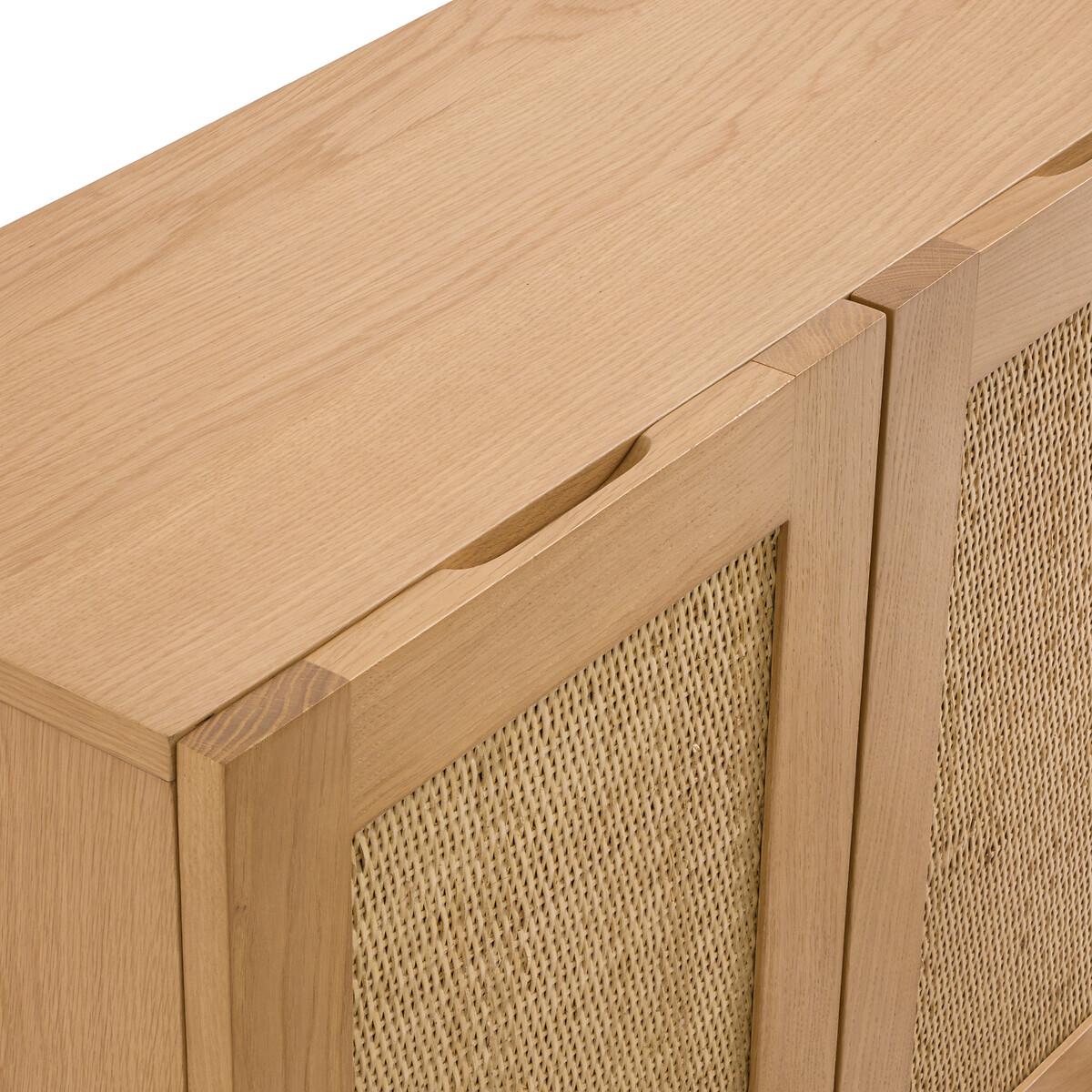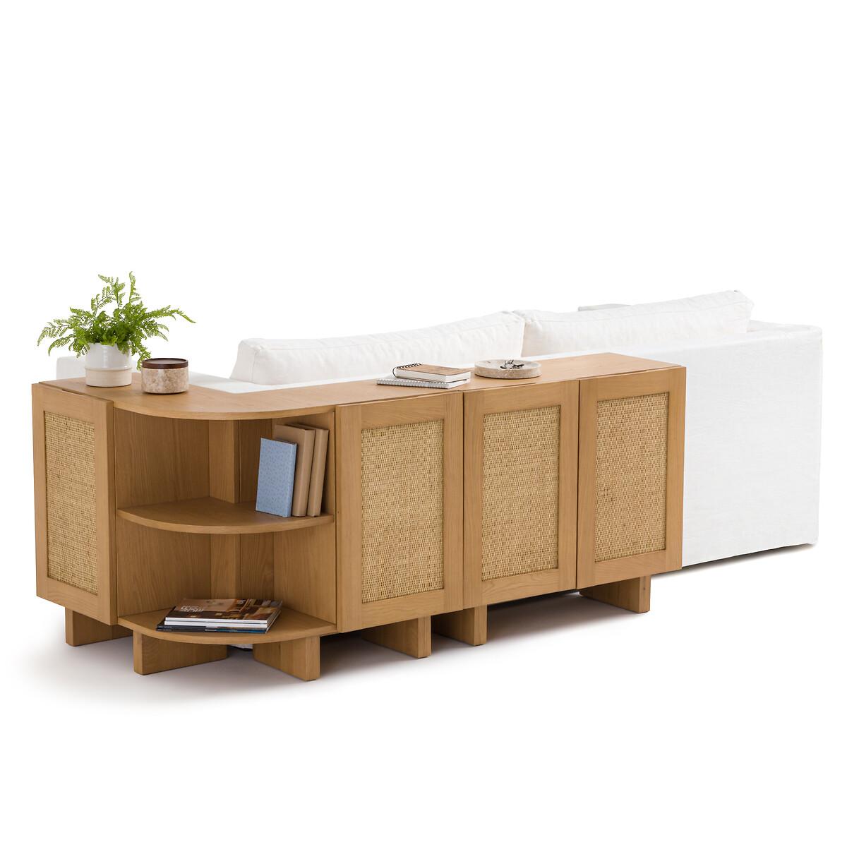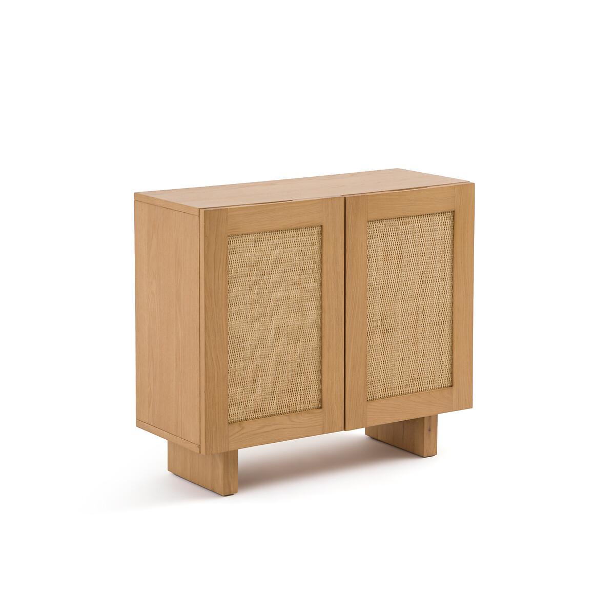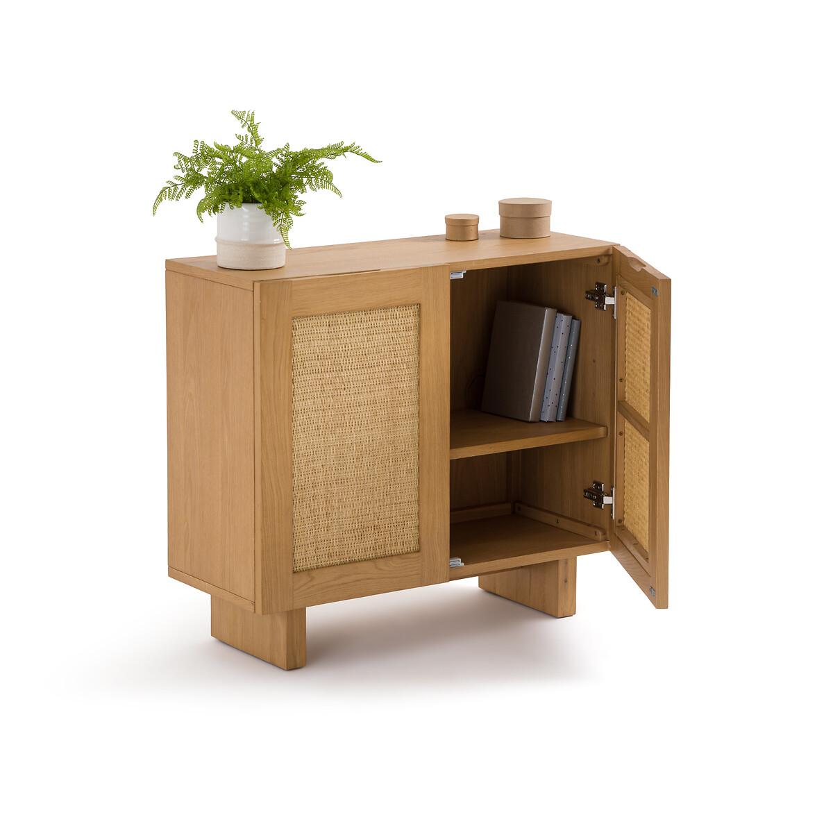 A Scandinavian style with sleek lines: the Arty range combines light tones and canework. Warm furniture, which will find its place in a bohemian style interior. Compact and functional, this 2-door sideboard can be used alone or juxtaposed with the corner shelf from the same range to furnish the back of a sofa. A creation by our La Redoute Interiors designers, made in Europe. Product Details • Structure in solid oak with nitrocellulose varnish finish • Panels and legs in oak veneered MDF, nitrocellulose varnish finish • 2 doors with rattan canework, nitrocellulose varnish finish • FSC® certified wood • Soft closing hinges • Knockout handles on the top of the doors • 2 compartments and 1 removable and adjustable shelf • To combine with the Arty corner shelf sold on the site for more storage. Quality Info • Soft-closing : soft, silent door closing system, also preventing fingers from being trapped. Dimensions Overall • Width: 80cm • Height: 70cm • Depth: 32.2cm • Height of legs: 12cm. Usable space • Compartment upper part (interior box with shelf at intermediate height): L76.2 x H26 x D28cm • Compartment lower part (inside box with shelf at intermediate height): L76.2 x H26 x D26cm • This product requires assembly. • Made in Europe. • WOOD FROM SUSTAINABLY MANAGED FORESTS. FSC® certified wood comes from forests that are environmentally, socially and economically well managed. Dimensions and weight of parcel1 parcel • L95.3 x H16 x D68.8cm. 33kg