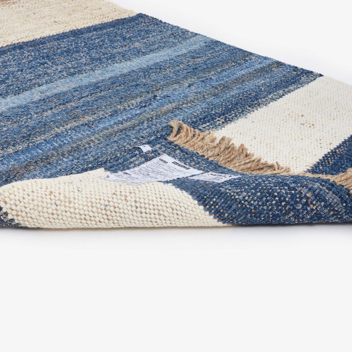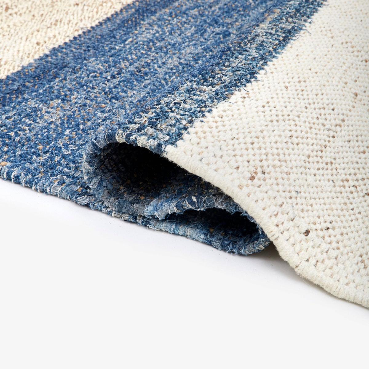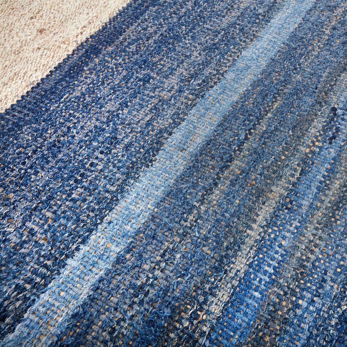 Sink your toes into comfort with our Arty area rug. Made from the softest hemp and recycled denim, its beautiful colours and textures bring an entire space together in a cohesive way. Hand-woven from 100% recycled jeans, Arty features colourful block striations. It is expertly handmade in India from deadstock cotton to produce a truly unique piece. The perfect way to add a touch of bohemia to your living space, this versatile rug translates from stylish to cosy. Embrace the sustainability and craft of Arty and let this eye-catching floor covering add warmth to your home.