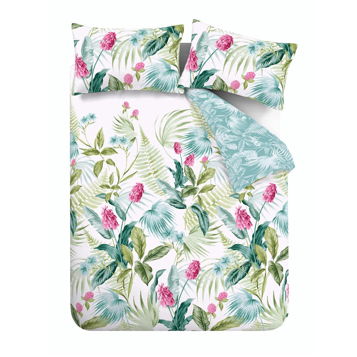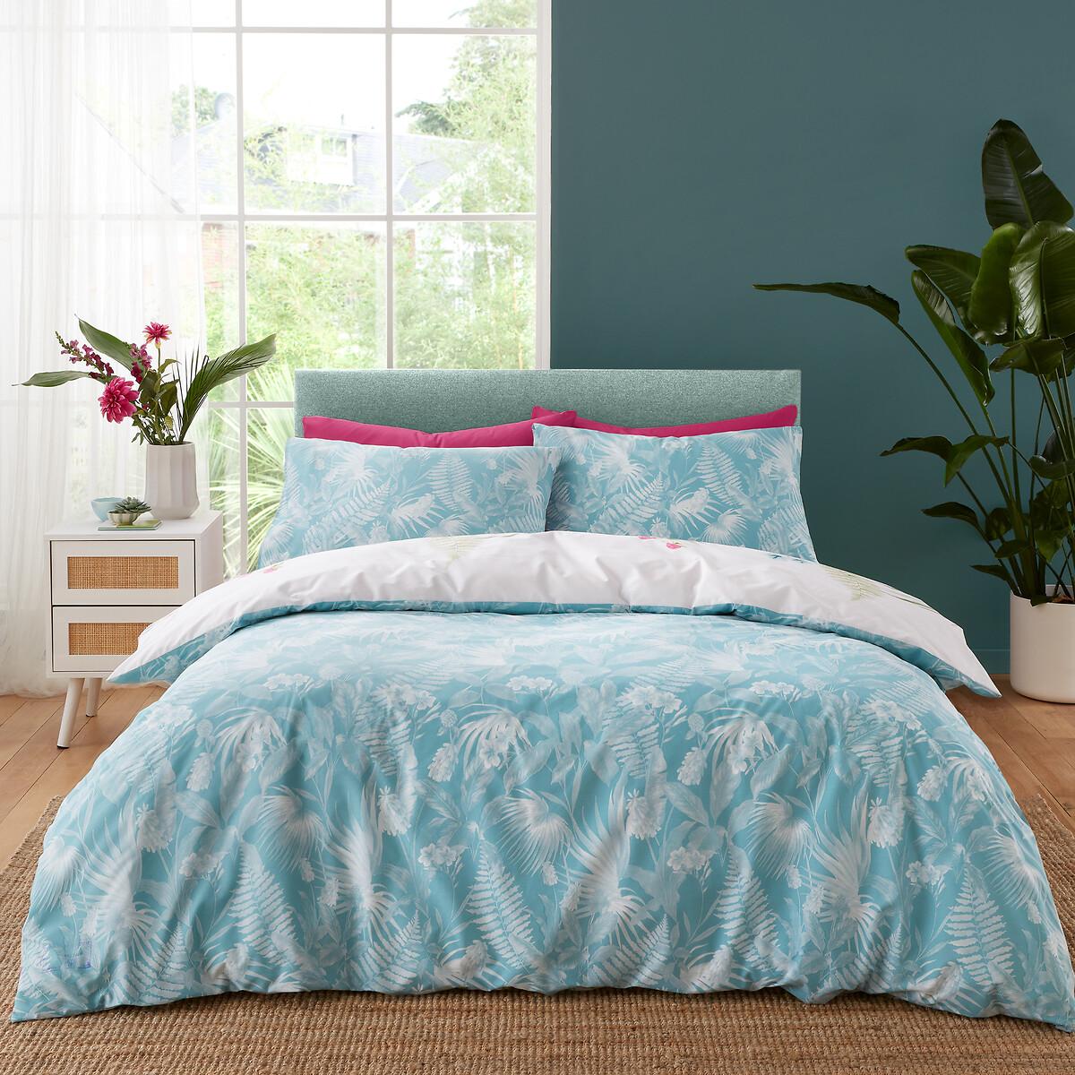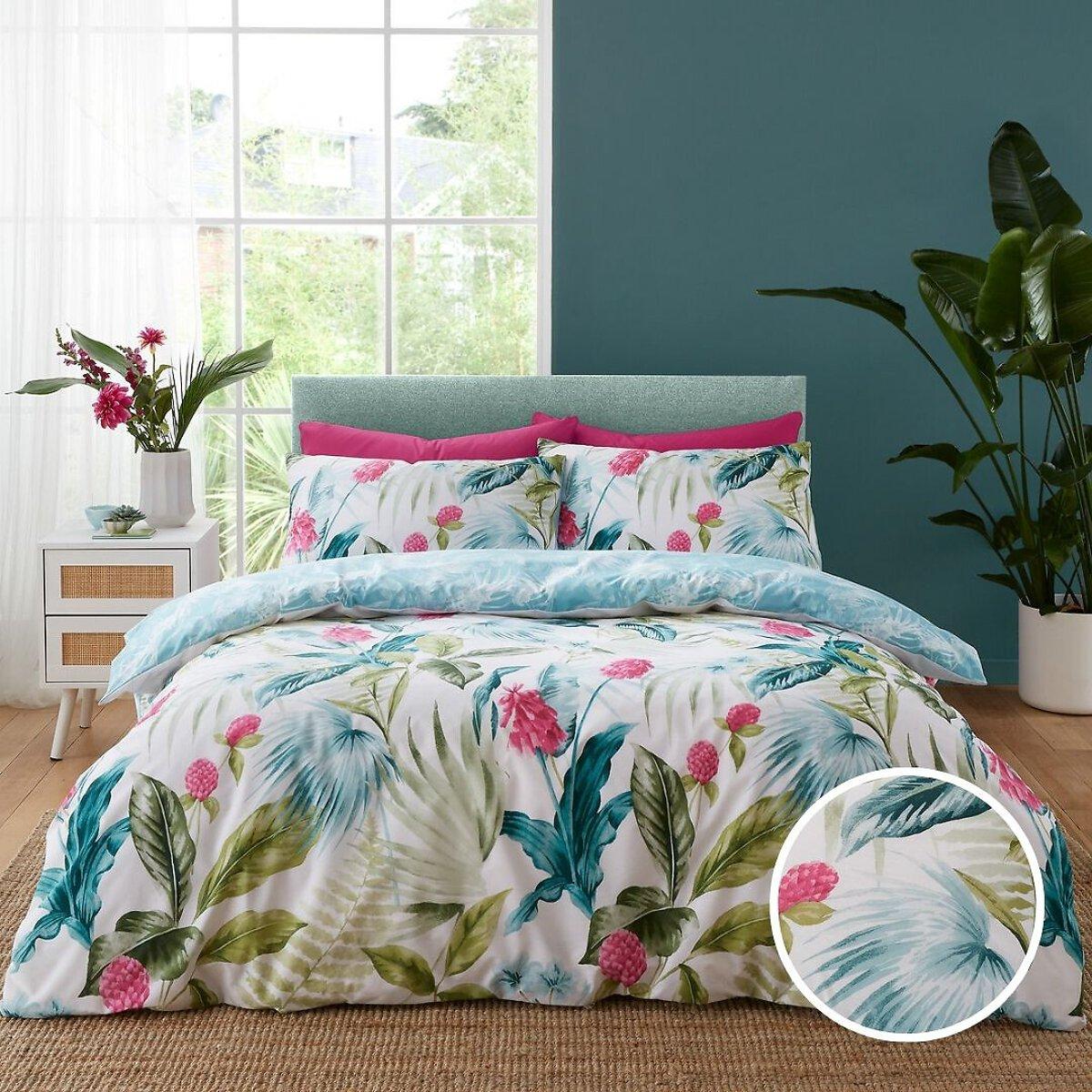 Inspired by the vibrant and enchanting tropicana of Aruba, this bedding will transport you to a lush oasis of exotic beauty and serene relaxation. Showcasing a symphony of vibrant colours, lush palm leaves and vibrant flowers are contrasted with a silhouetted leaves reverse in a serene shade of green. Created from easy-care recycled polyester and soft responsibly sourced cotton, blended together for everyday use. Catherine Lansfield is renowned for style and quality - designed and developed in Great Britain. Made to quality and human-ecological safety standards, in accordance with STANDARD 100 by OEKO-TEX®.Product Dimensions:52% Polyester 48% Cotton. Sizes available: -135x200cm (Single)-200x200cm (Double)-220x230cm (King)This product will be dispatched by one of our trusted suppliers. You’ll be contacted by their selected courier about your delivery. TURNE01