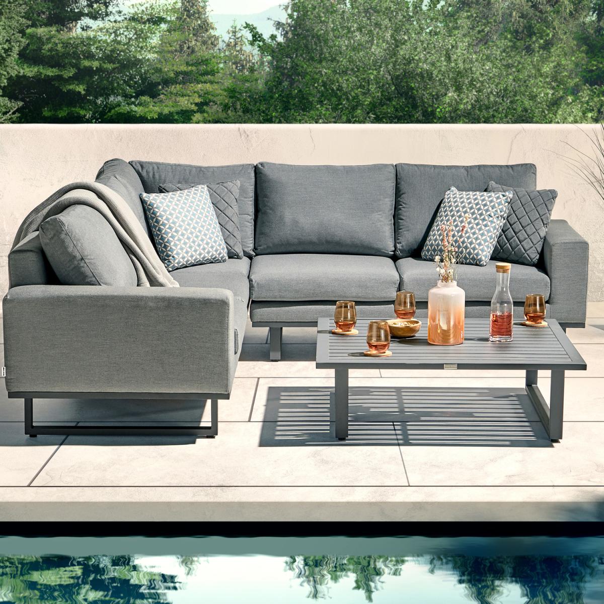 Bringing the indoors outside with the Aruba Patio Corner Sofa Set! Create an outdoor living space fit for Summer BBQs, cosy gatherings with friends and family or even just reading your favourite book outside. The outdoor furniture set complete with a garden coffee table is perfect for drinks or outdoor dining and includes a waterproof cover for storage. Sunbrella patio furniture is the best garden furniture for our British weather. Outdoor sofas and armchairs are becoming even more popular over the last few years with more wholesome family staycations and stay-at-home gatherings.