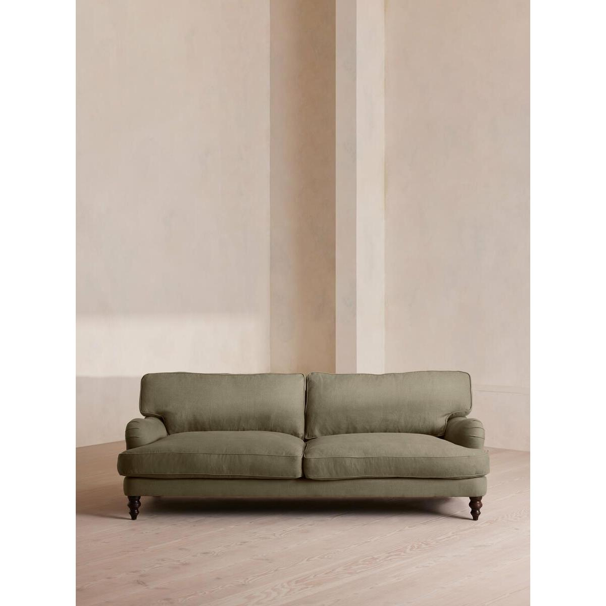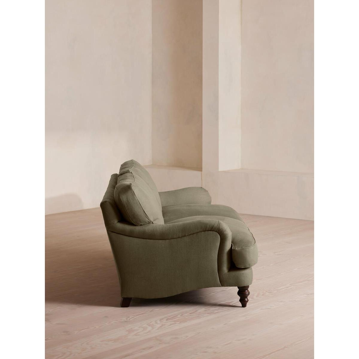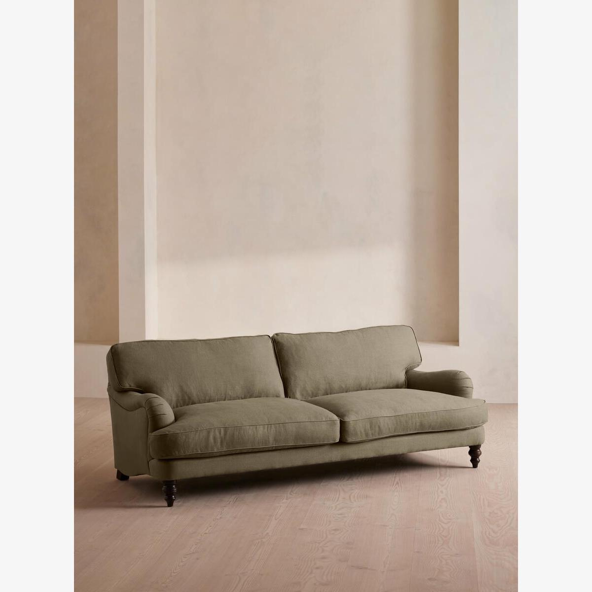 Inspired by the country interiors of Soho Farmhouse, our four-seater Arundel sofa is cut from linen and shows our take on a traditional English roll arm. The feather-wrapped foam seat cushions enhance the deep-sit lounger shape, while an elongated back offers additional comfort and support. Soho House take on a traditional English roll arm Deep-sit lounge style High back for extra comfort Feather-wrapped foam linen cushions Solid wood turned legs Inspired by Soho Farmhouse