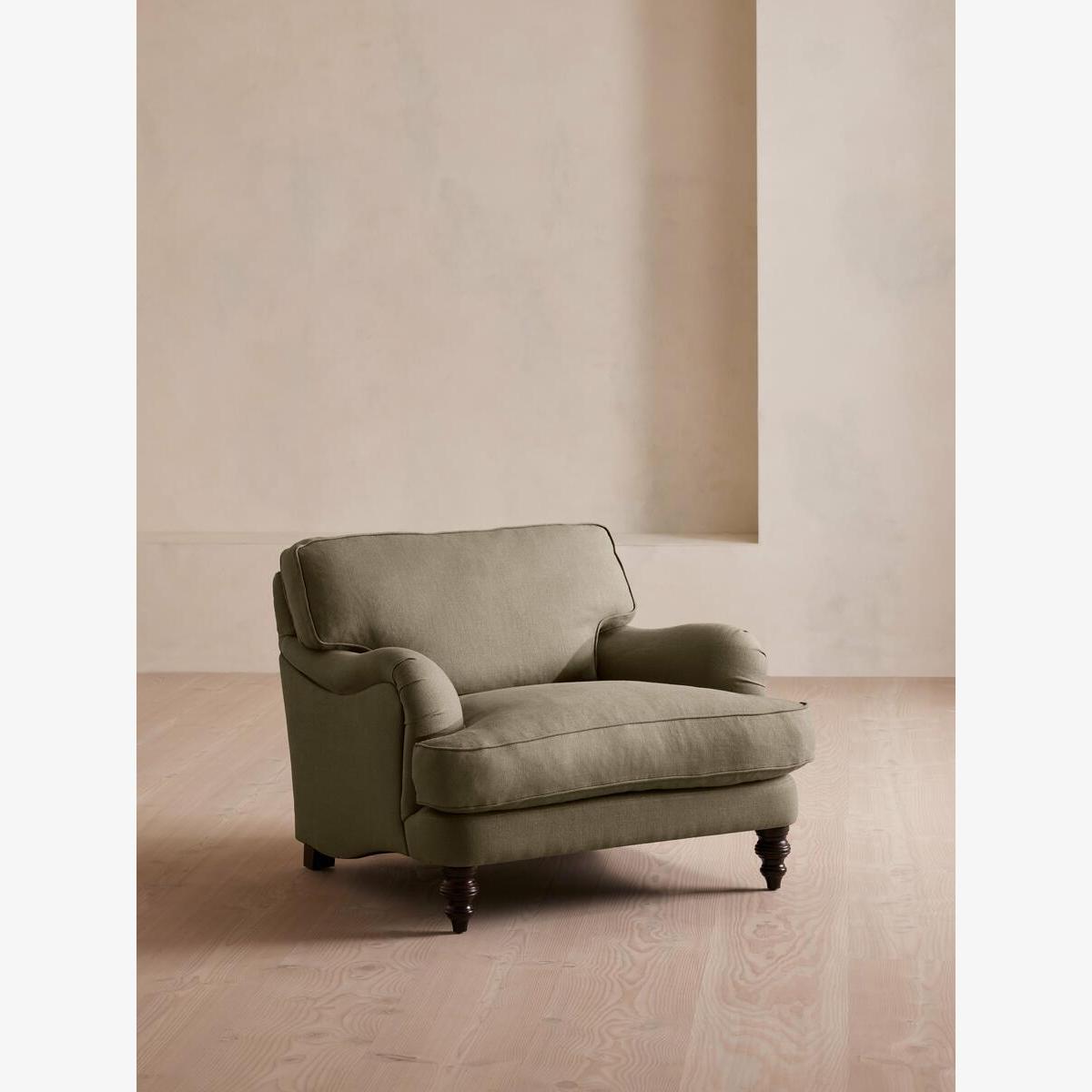Inspired by the country interiors of Soho Farmhouse, our Arundel loveseat is cut from linen and shows our take on a traditional English roll arm. The feather-wrapped foam seat cushions enhance the deep-sit lounger shape, while an elongated back offers additional comfort and support. Soho House take on a traditional English roll arm Deep-sit lounge style High back for extra comfort Feather-wrapped foam linen cushions Solid wood turned legs Inspired by Soho Farmhouse