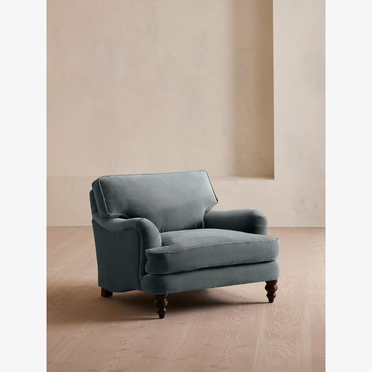 Inspired by the country interiors of Soho Farmhouse, our Arundel loveseat is cut from velvet and shows our take on a traditional English roll arm. The feather-wrapped foam seat cushions enhance the deep-sit lounger shape, while an elongated back offers additional comfort and support. Soho House take on a traditional English roll arm Deep-sit lounge style High back for extra comfort Feather-wrapped foam linen cushions Solid wood turned legs Inspired by Soho Farmhouse