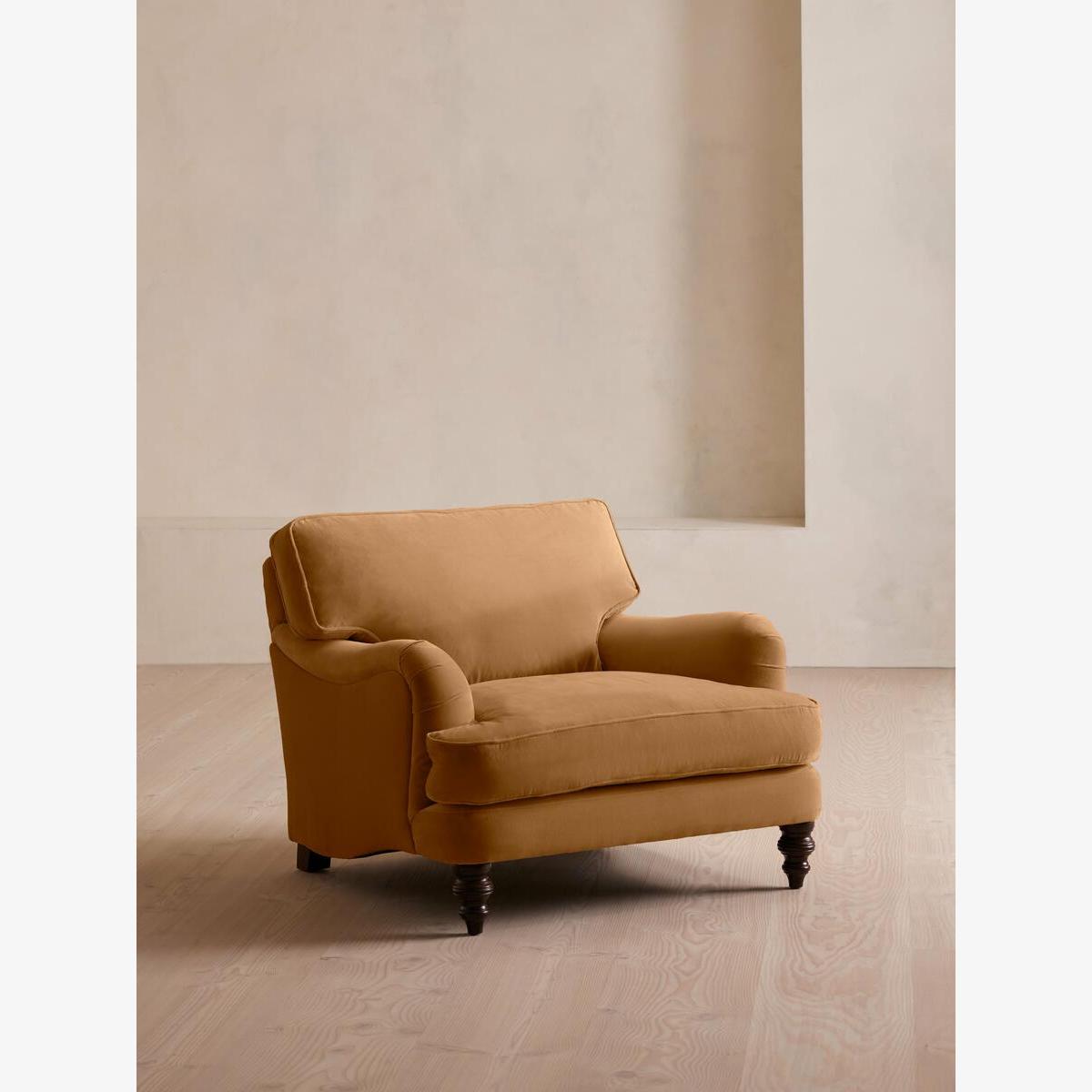 Inspired by the country interiors of Soho Farmhouse, our Arundel loveseat is cut from velvet and shows our take on a traditional English roll arm. The feather-wrapped foam seat cushions enhance the deep-sit lounger shape, while an elongated back offers additional comfort and support. Soho House take on a traditional English roll arm Deep-sit lounge style High back for extra comfort Feather-wrapped foam linen cushions Solid wood turned legs Inspired by Soho Farmhouse