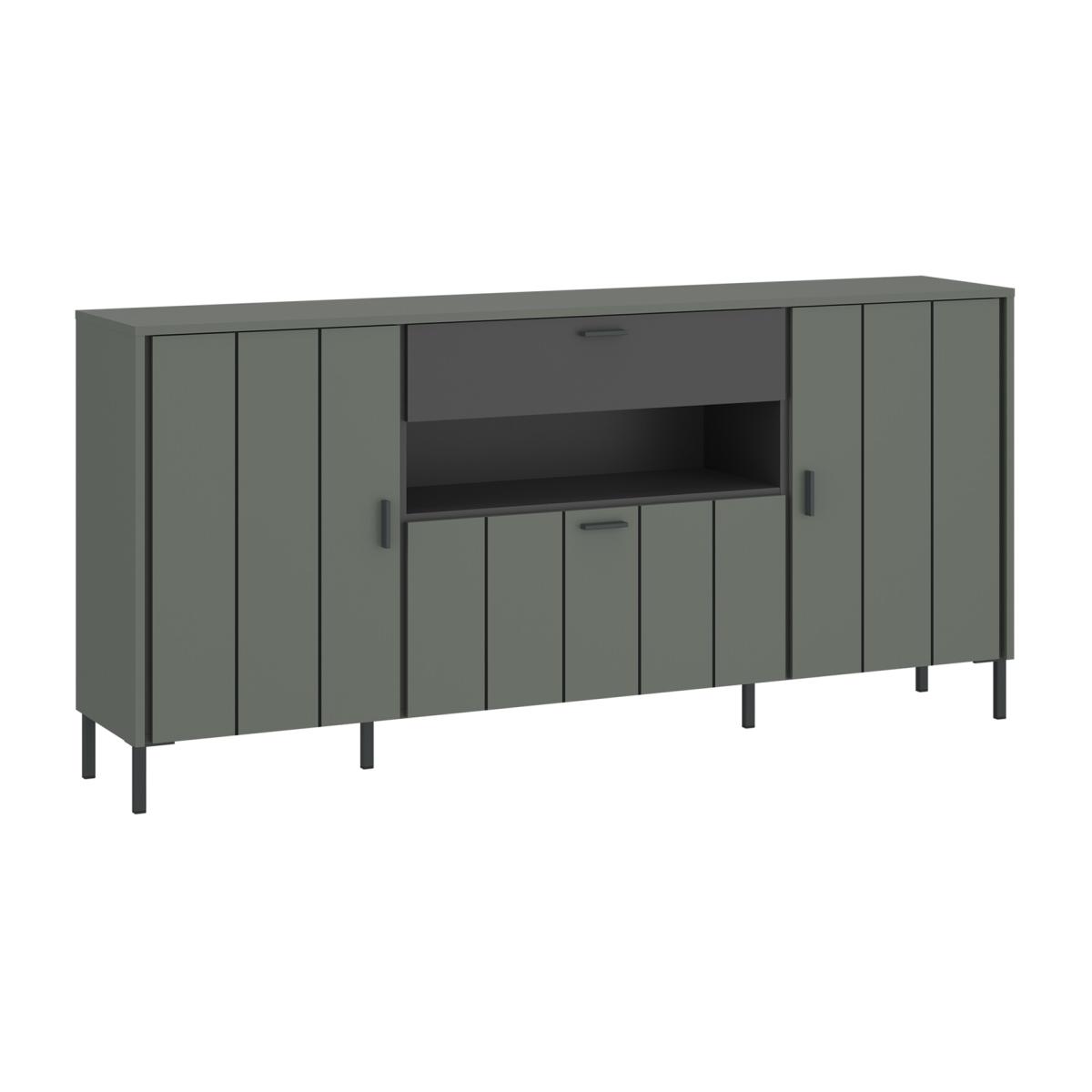 Elevate your home with the Arundel Slatted Sideboard, a piece that blends practical storage with stylish design. Crafted from durable laminated chipboard, it is built to last while maintaining a refined look. The sideboard features two spacious doors, a flap and a full-extension drawer, providing versatile storage for everyday essentials, tableware, or decorative items. Its anthracite accents bring depth and contrast, while the sleek open display offers a perfect spot for showcasing decor pieces. Supported by high metal legs, this sideboard adds a modern edge and fits effortlessly into eclectic, vintage or contemporary interiors.