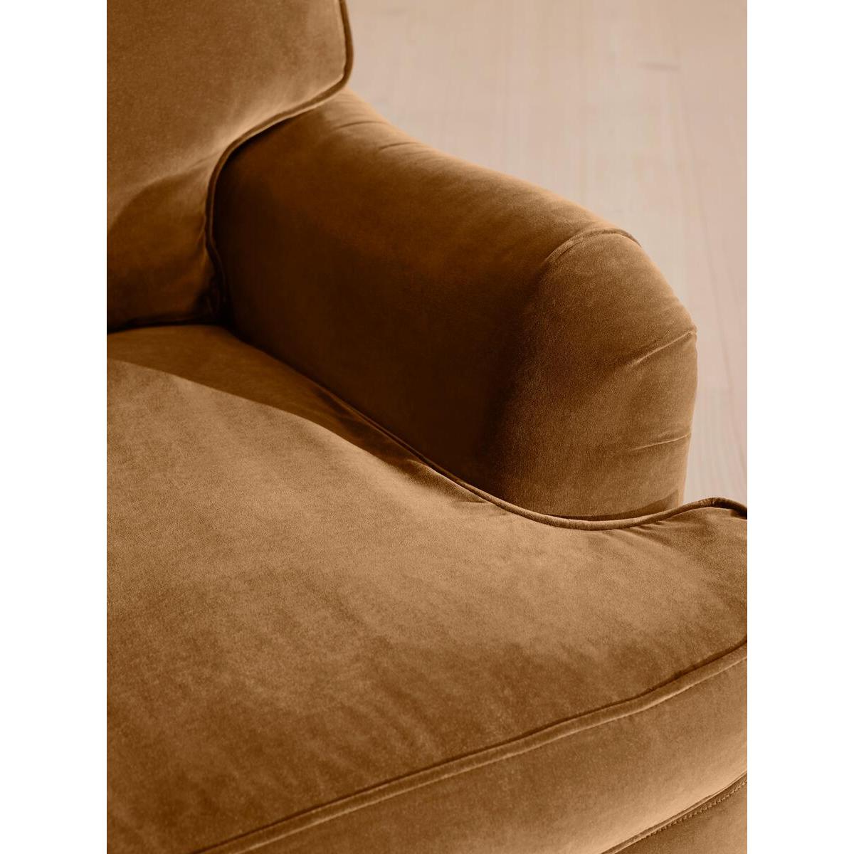 Inspired by the country interiors of Soho Farmhouse, our Arundel sofa is cut from cotton velvet and shows our take on a traditional English roll arm. The feather-wrapped foam seat cushions enhance the deep-sit lounger shape, while an elongated back offers additional comfort and support. Soho House take on a traditional English roll arm Deep-sit lounge style High back for extra comfort Feather-wrapped foam cushions Solid wood turned legs Inspired by Soho Farmhouse