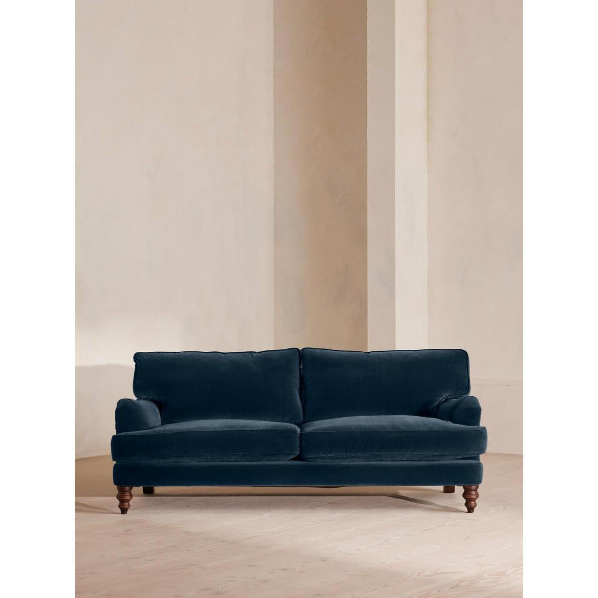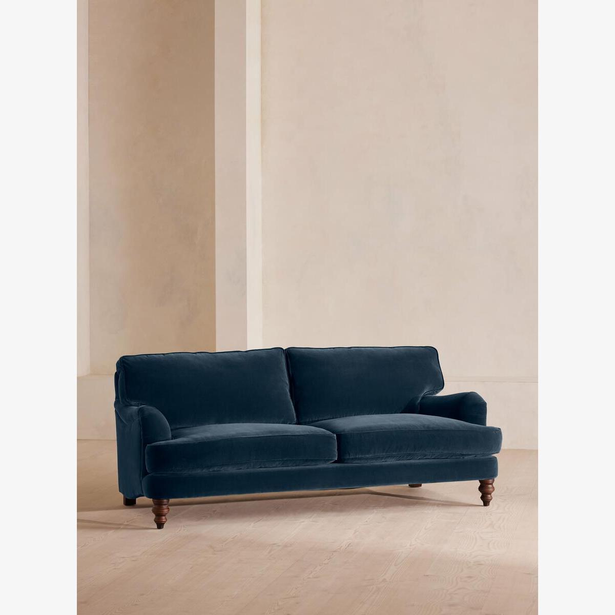 Inspired by the country interiors of Soho Farmhouse, our Arundel sofa is cut from cotton velvet and shows our take on a traditional English roll arm. The feather-wrapped foam seat cushions enhance the deep-sit lounger shape, while an elongated back offers additional comfort and support. Soho House take on a traditional English roll arm Deep-sit lounge style High back for extra comfort Feather-wrapped foam cushions Solid wood turned legs Inspired by Soho Farmhouse