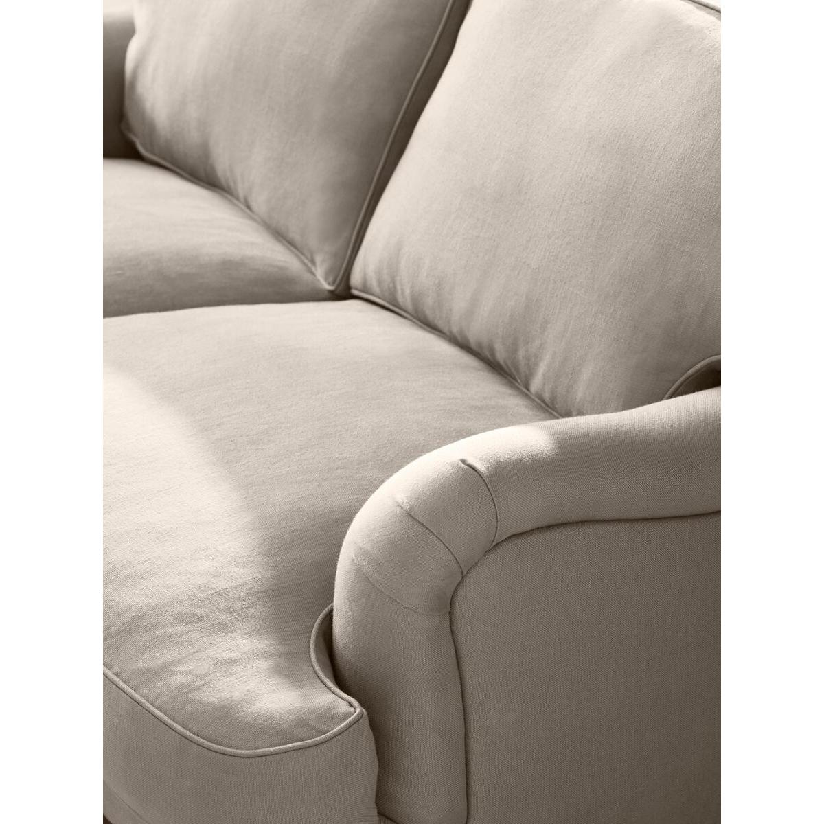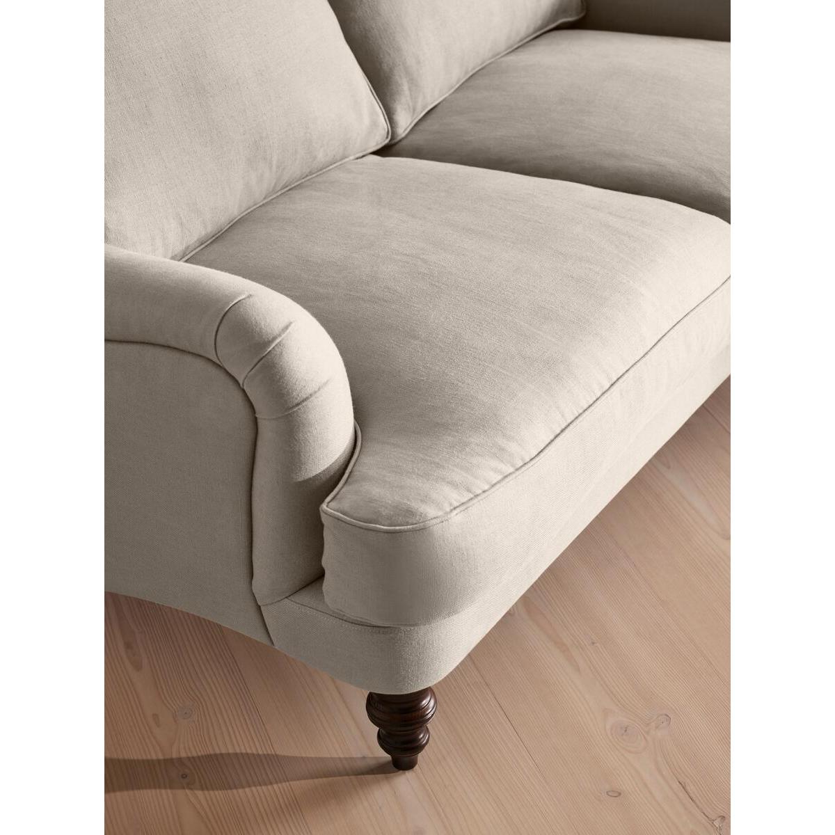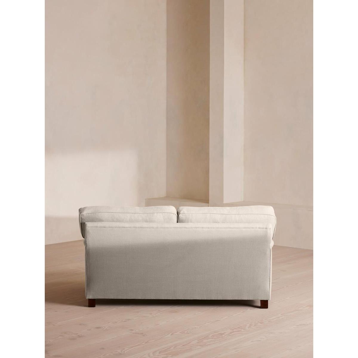 Inspired by the country interiors of Soho Farmhouse, our two-seater Arundel sofa is cut from linen and shows our take on a traditional English roll arm. The feather-wrapped foam seat cushions enhance the deep-sit lounger shape, while an elongated back offers additional comfort and support. Soho House take on a traditional English roll arm Deep-sit lounge style High back for extra comfort Feather-wrapped foam linen cushions Solid wood turned legs Inspired by Soho Farmhouse