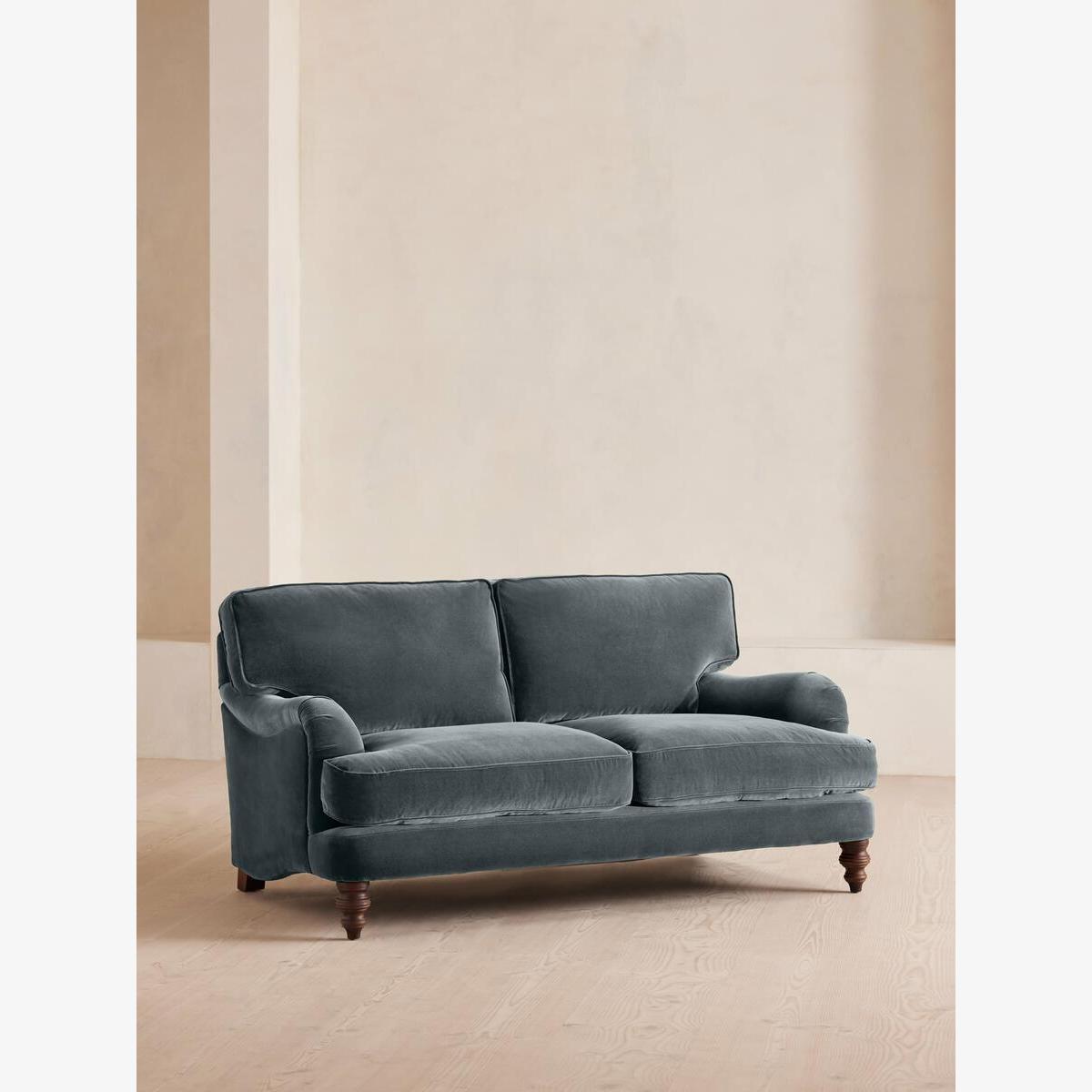 Arundel Two Seater Sofa, Velvet, Grey Blue