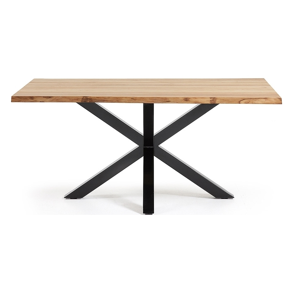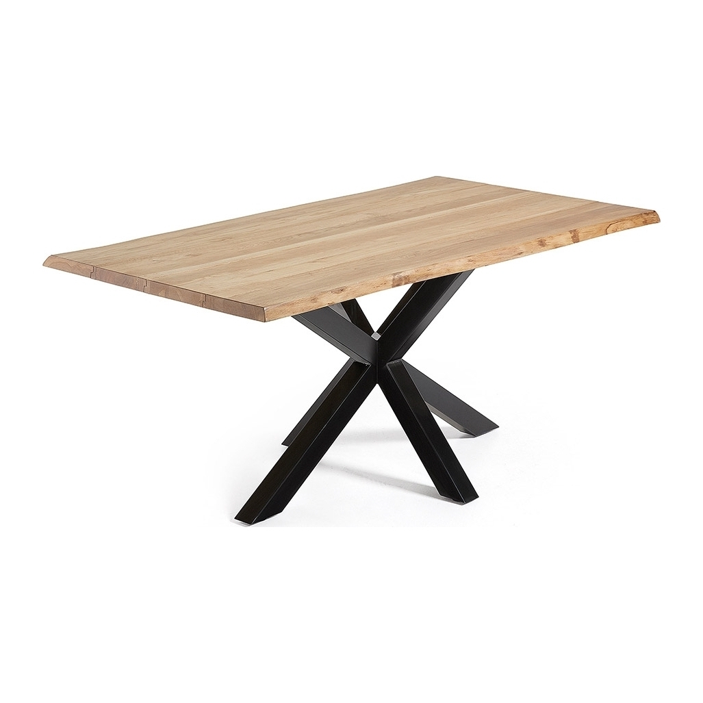 I love the mix of natural oak top with the bold black cross legs on this table. It offers a clean, contemporary look that works well in both modern and Scandi-inspired interiors. The combination of materials makes it versatile-pair it with neutral upholstered chairs for a softer feel, or go for metal or wooden seats for a more industrial vibe. Practical styling tips include keeping the tabletop clutter-free to highlight its sleek design, and adding a statement centrepiece like a colourful vase or sculptural bowl to create visual interest. It’s a solid choice for those wanting a functional yet stylish dining focal point that seamlessly blends elegance with everyday practicality.