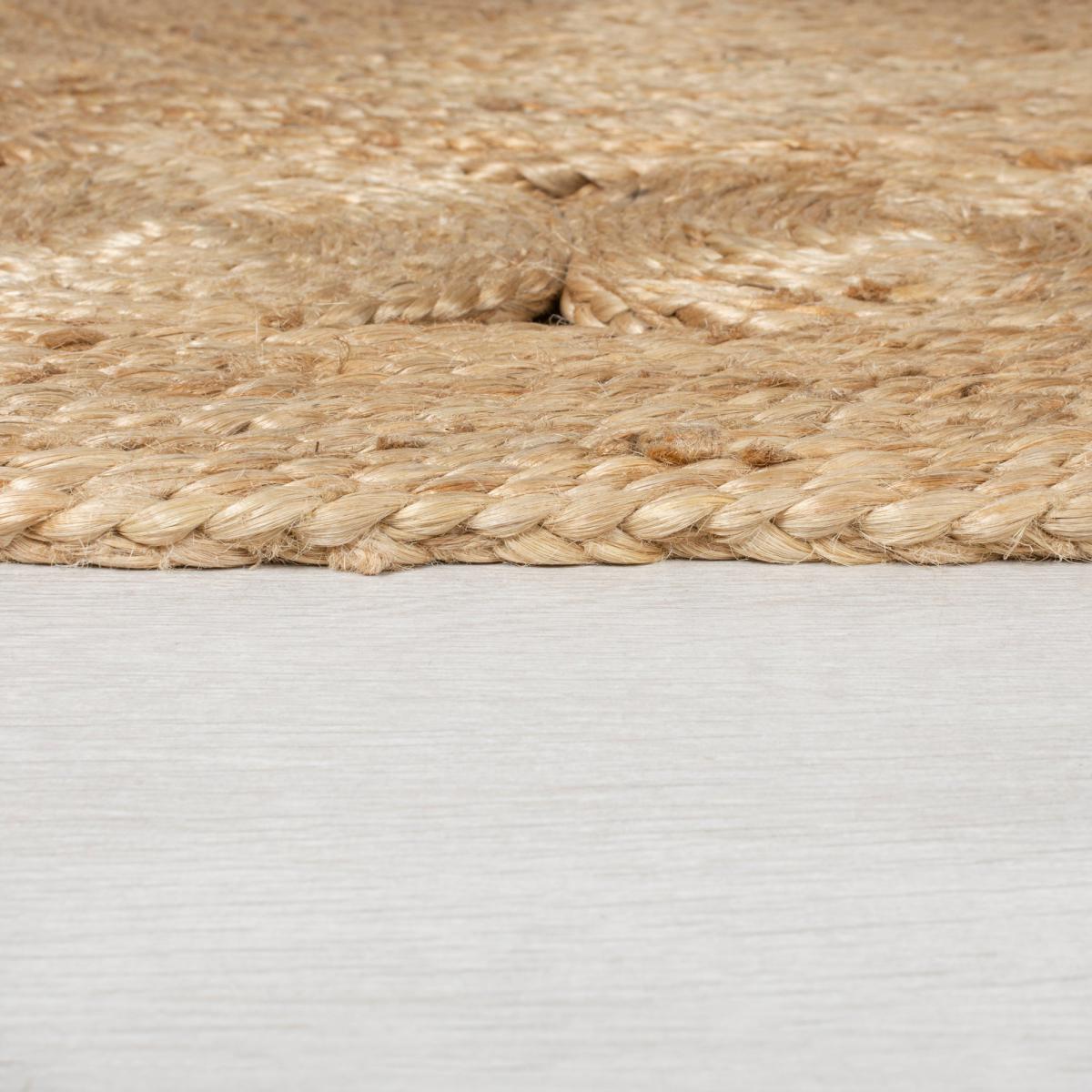 Introducing Arya Jute Circle Rug. Handwoven by skilled craftspeople in undyed jute, Arya Jute Circle is the perfect addition to add a touch of nature to your space with the unique looped finish adding an artisanal look. We love the hard-wearing qualities of jute, perfect for high-traffic areas and sitting under furniture. Try the Arya Jute Circle under round coffee or dining tables. A small amount of fibre loss is normal. Do not pull loose fibres, just trim with scissors. Safe for use on a heated floor. Use a suction type vacuum - rotating brushes may damage this rug. Re-roll your rug pile out for 24 hours to reduce curling. Regularly turn to ensure even wear. An anti-slip mat will help prevent slipping. Blot spills immediately with a clean, dry white cloth. Do not rub. Colour may vary as this product is made from natural fibres. Do not leave children unattended on this product.