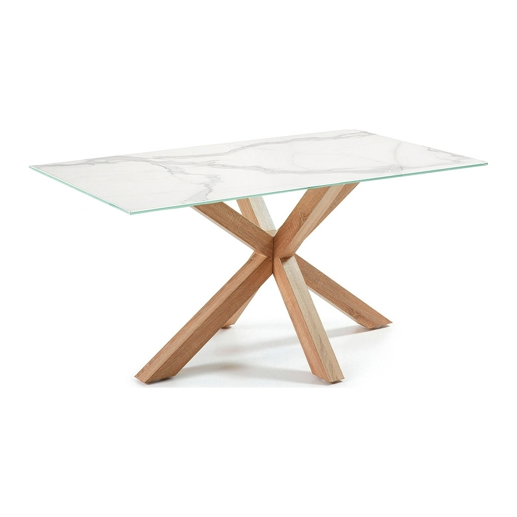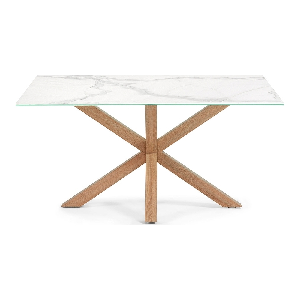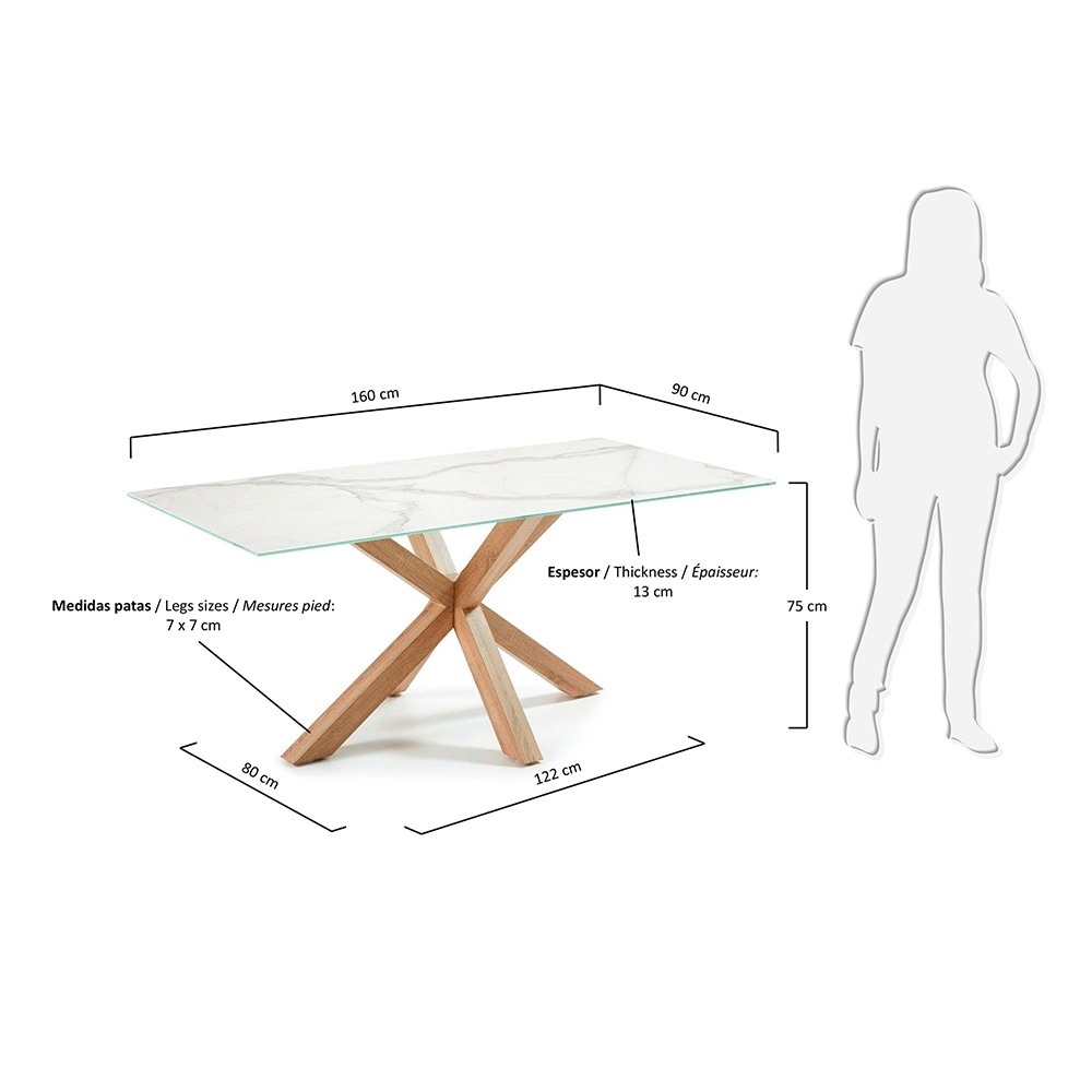 There is certainly no lack of space with the Arya Marble Effect Dining Table with Cross Legs. Enough room for six chairs, entertaining has just got that much easier with this fabulous table! Perfect for those big family gatherings or wining and dining friends, this table is truly a statement piece. The legs are made from steel with a wood effect finish whilst the top has been manufactured from a porcelain slab with a glass support, giving this piece of dining furniture a stunning contemporary feel that will suit any interior style and be a real focal point for those dinner parties!