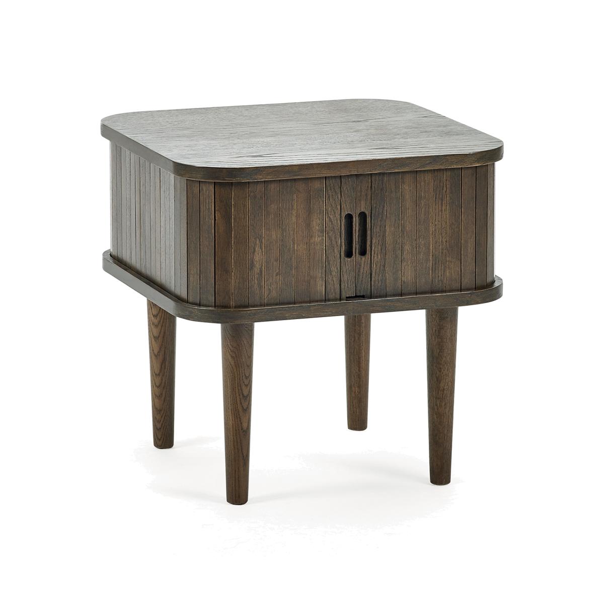 Elevate your space with the captivating Arya Side Table a luxurious accent piece that effortlessly combines timeless style with modern functionality. With its rich dark oak effect finish and distinctive slatted tambour doors, this piece offers both style and functionality. Slide open the two doors to reveal generous storage, perfectly concealed yet easily accessible through the sleek cut-out handles. Standing gracefully on four Nordic-inspired tapered legs, this side table adds a touch of sophistication to any room. Whether as a standout in the living room or a refined bedside companion. Add undeniable style to your home decor. Minimal assembly is required to have it ready for use in no time.