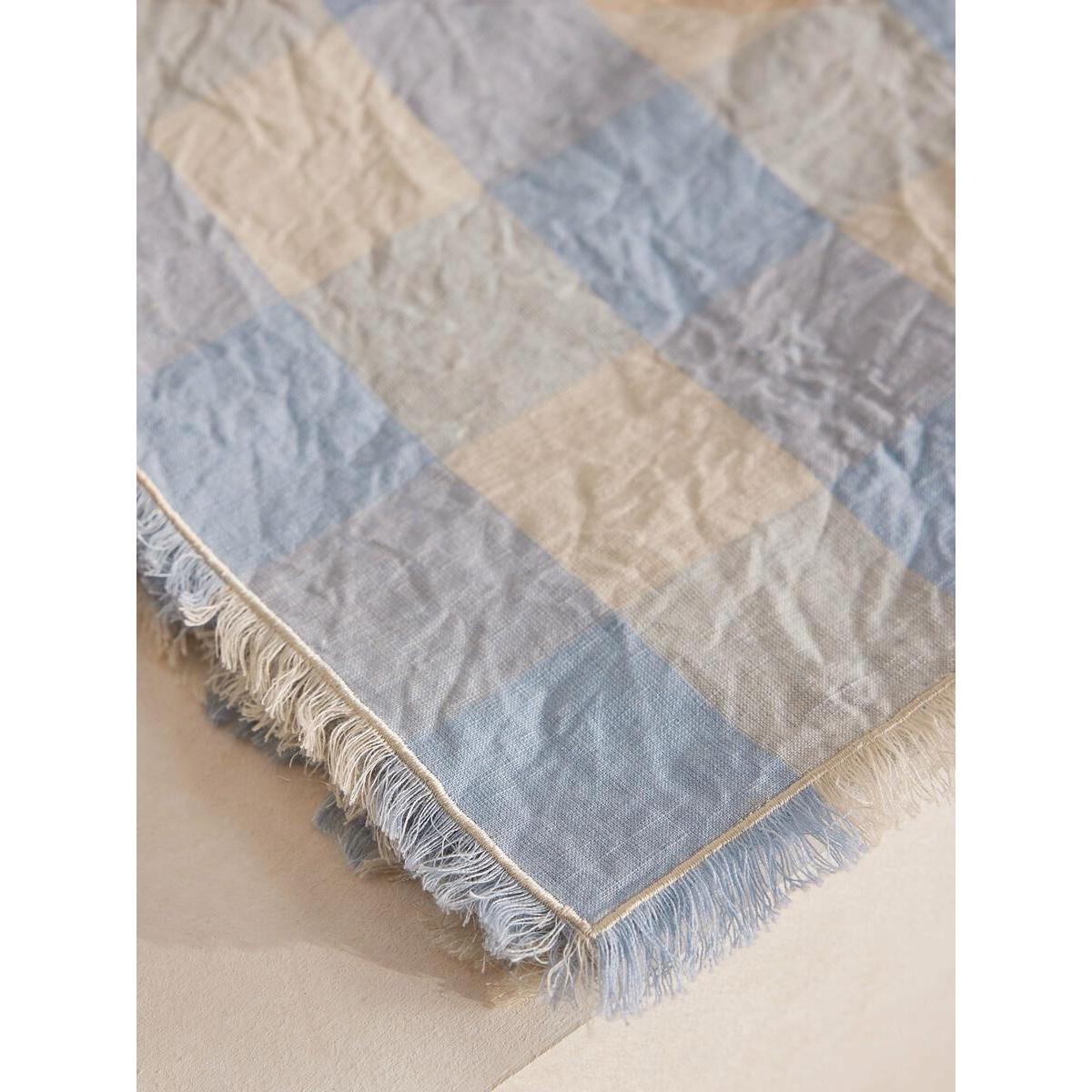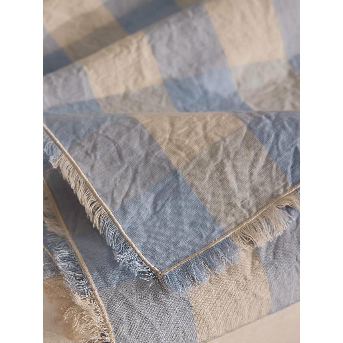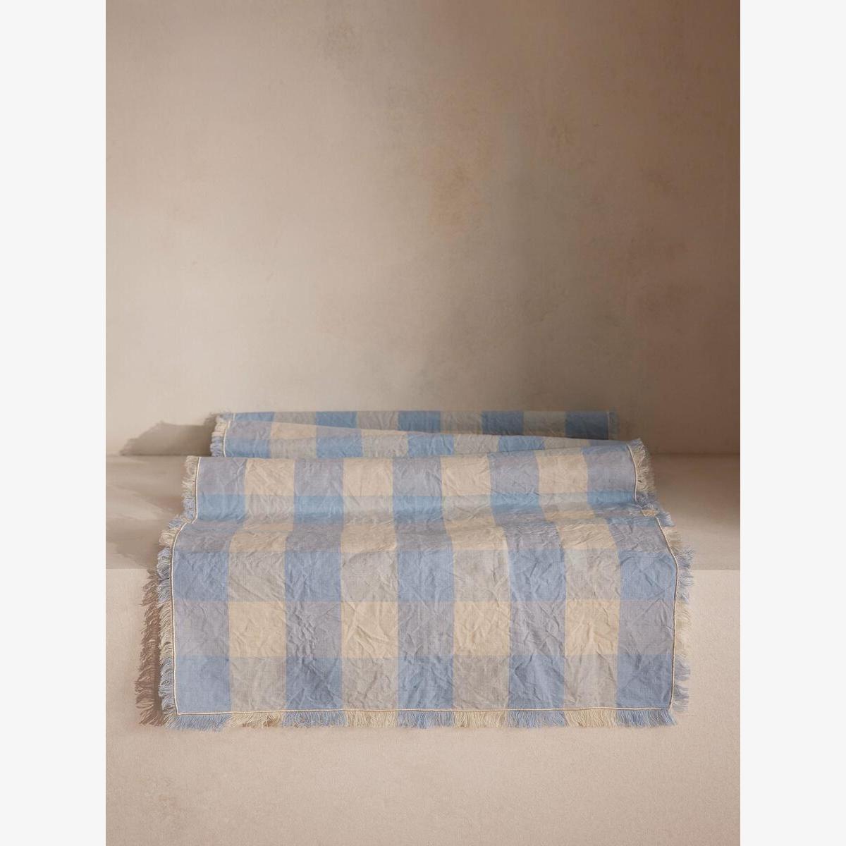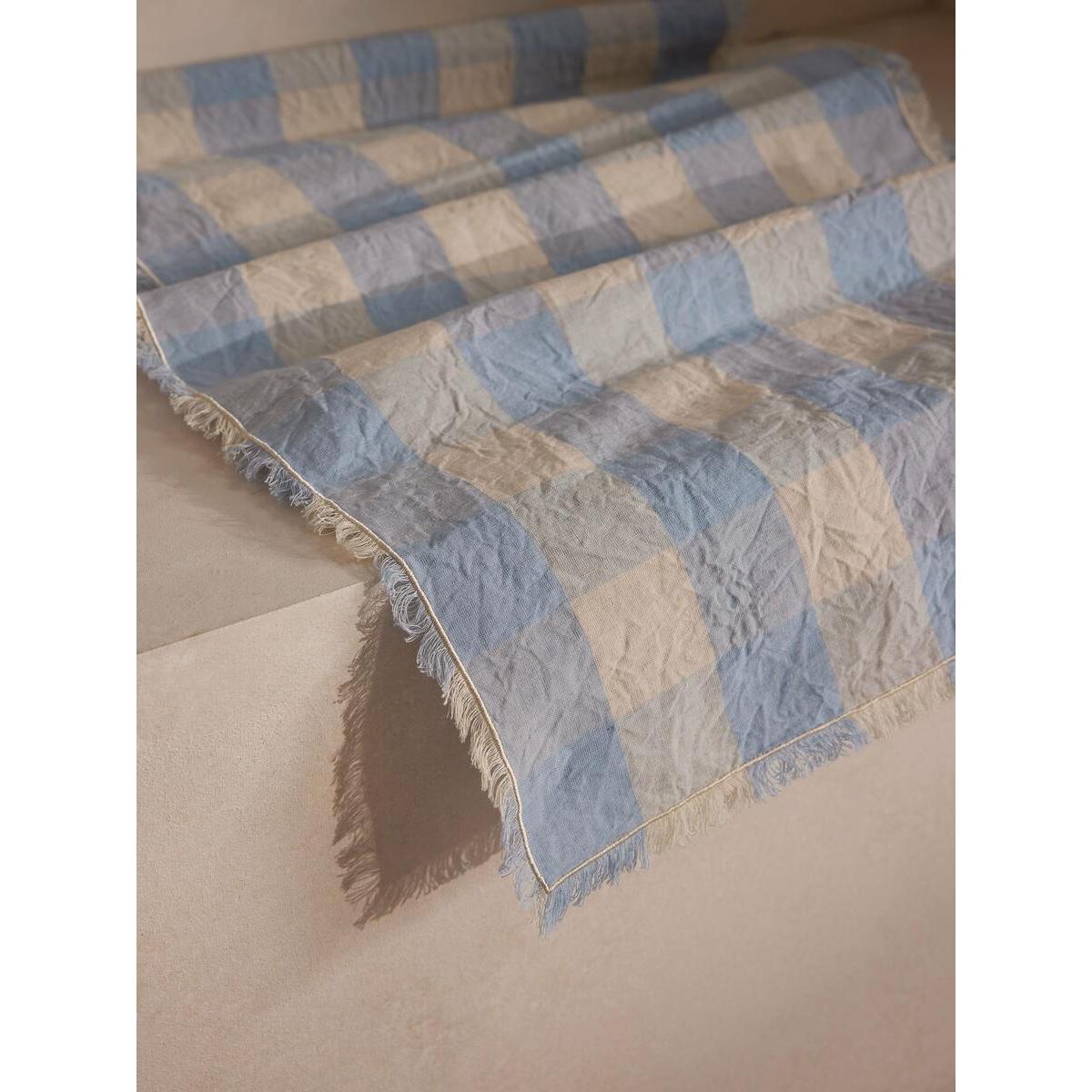 Inspired by Babington House, our Arzon range is ideal for dressing the table with a vintage look. Crafted in India from a pale blue check linen, this table runner has fringed hems for an added element of texture. Complete the arrangement with our Arzon napkins and tablecloth. Table runner Part of our Arzon textile range Crafted in India Pale blue check Fringed hems Inspired by Babington House
