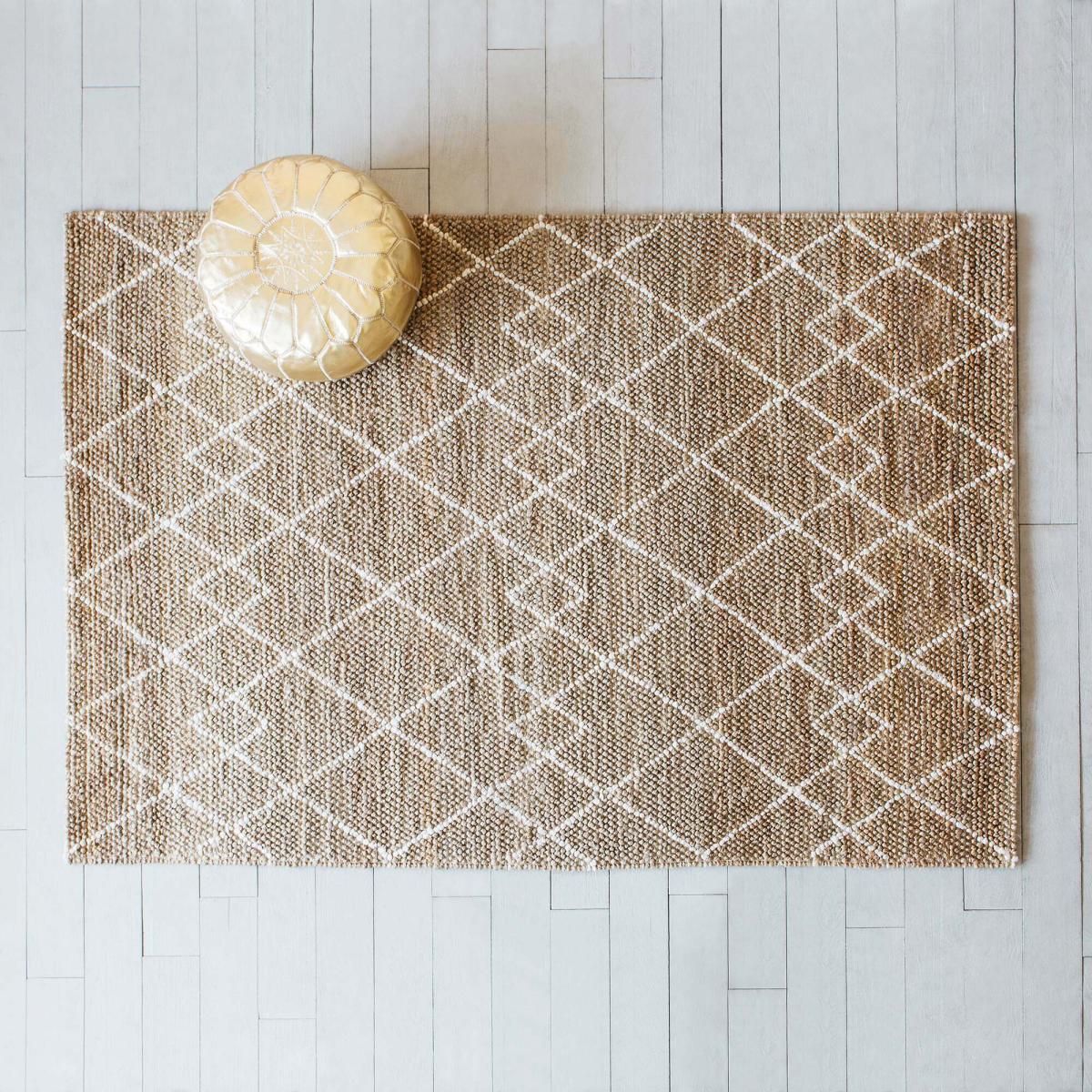Handwoven from hemp and cotton with a geometric print for adding layers of bohemian style to your home.