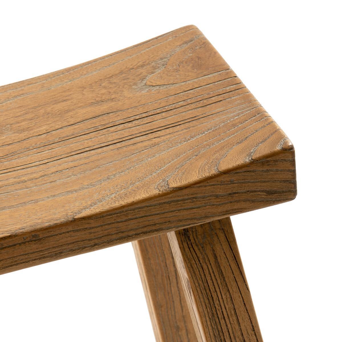 I love this stool because of its clean, minimalist design and the natural appeal of solid elm. It works particularly well in kitchens or bars with Scandinavian, rustic, or contemporary interiors, adding warmth and texture without overwhelming the space. Its simple silhouette means it’s adaptable for both everyday use and more styled settings - pair it with a natural wood table or contrasting with sleek, modern surfaces for a balanced look. Practical styling tips include mixing it with leather or woven textiles for added texture, and keeping the surrounding decor neutral to highlight the beauty of the wood grain. Its modest height and sturdy construction make it both functional and timeless.