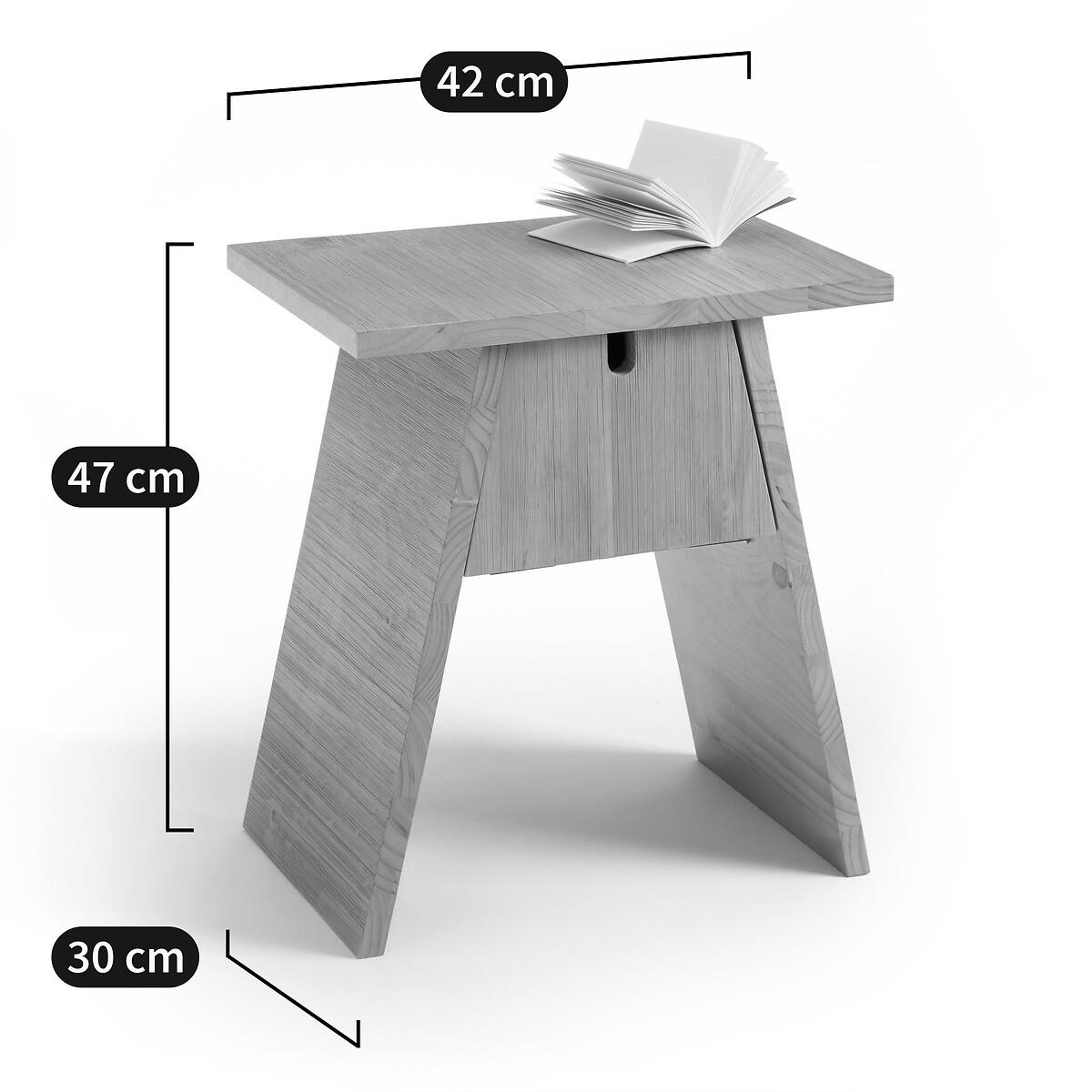 This decorative and functional bedside table has been inspired by Japanese design. Product Details • In solid oak-stained pine, nitrocellulose finish. • 1 storage compartment. Dimensions. Total: • Width: 42cm • Height: 47cm • Depth: 30cm. Usable dimensions: • Inside cupboard: L24 x D23 x H15cm. Delivery:This product requires assembly. Available for home delivery. Parcel dimensions and weight: • 1 parcel • 55 x 37 x 13cm. 7kg.