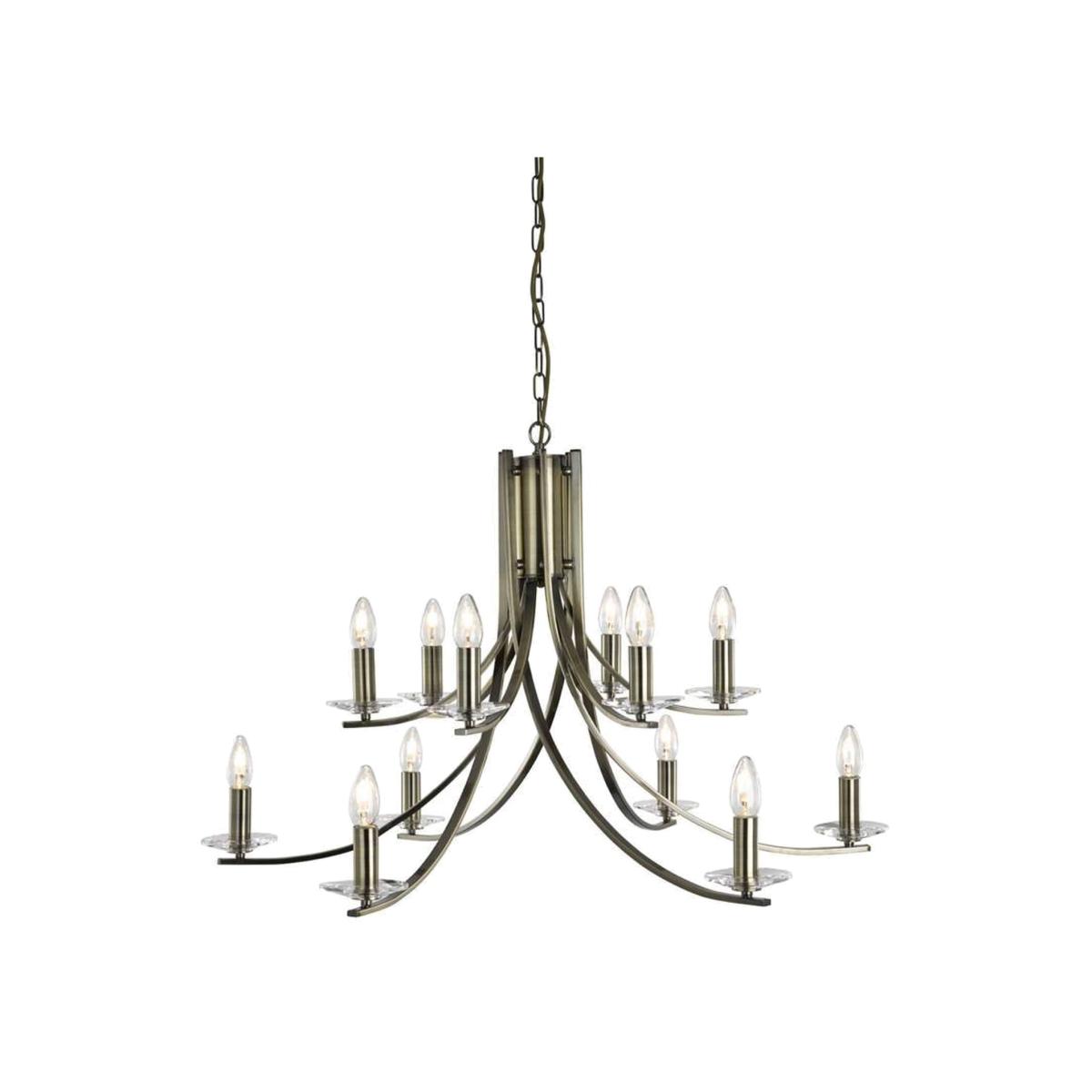This is a modern design candelabra style collection which is sure to provide ample lighting and a positive addition to the door at the same time. The squared arms are twisted in and out of each other, creating an interesting fitting which is sure to add class and style to the room. Available in a choice of sizes and finishes, the range is sure to offer the perfect fitting for your room. This twelve light ceiling light is also available in eight light and five light versions, as well as a matching wall light. All fittings are also available in satin silver and chrome.