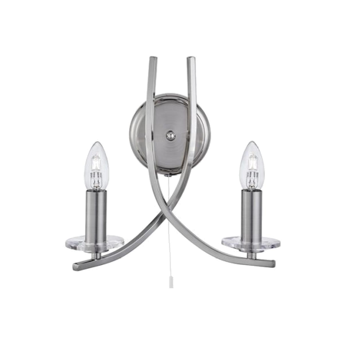 The Ascona Wall Light from Searchlight is sleek and contemporary, with a smooth satin silver finish. Just add standard candle bulbs for this light fitting and go! This modern wall light is also fitted with a pull cord so it can be independantly switched on and off if required. This stylish wall light will make a fantastic addition to contemporary living rooms, dining rooms or bedrooms, especially when paired with the matching ceiling light from the same collection.
